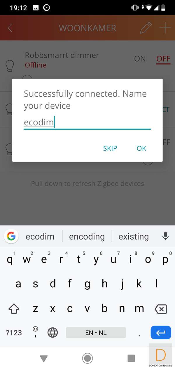 First start the Trust Home APP and go to the room where you want to add the dimmer. Then press the plus in the top right and select: other product and then Zigbee light dimmable. The addition will start if you have pressed the "connect" button. Then you provide the dimmer with power. If nothing has exploded, he will find the module and add it according to the manual.
