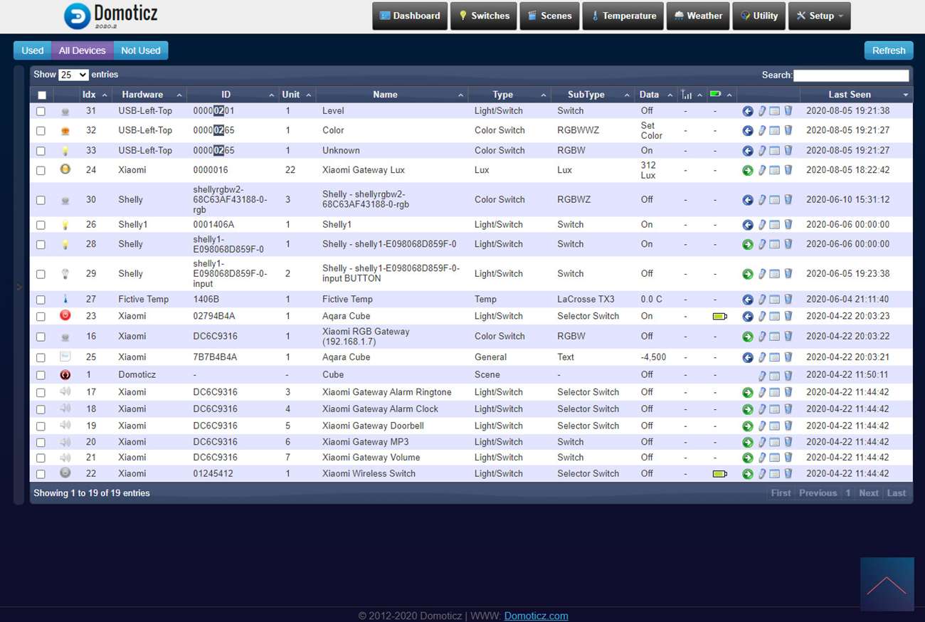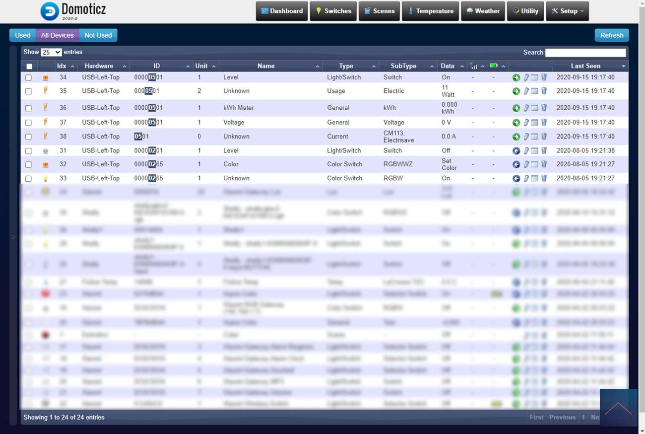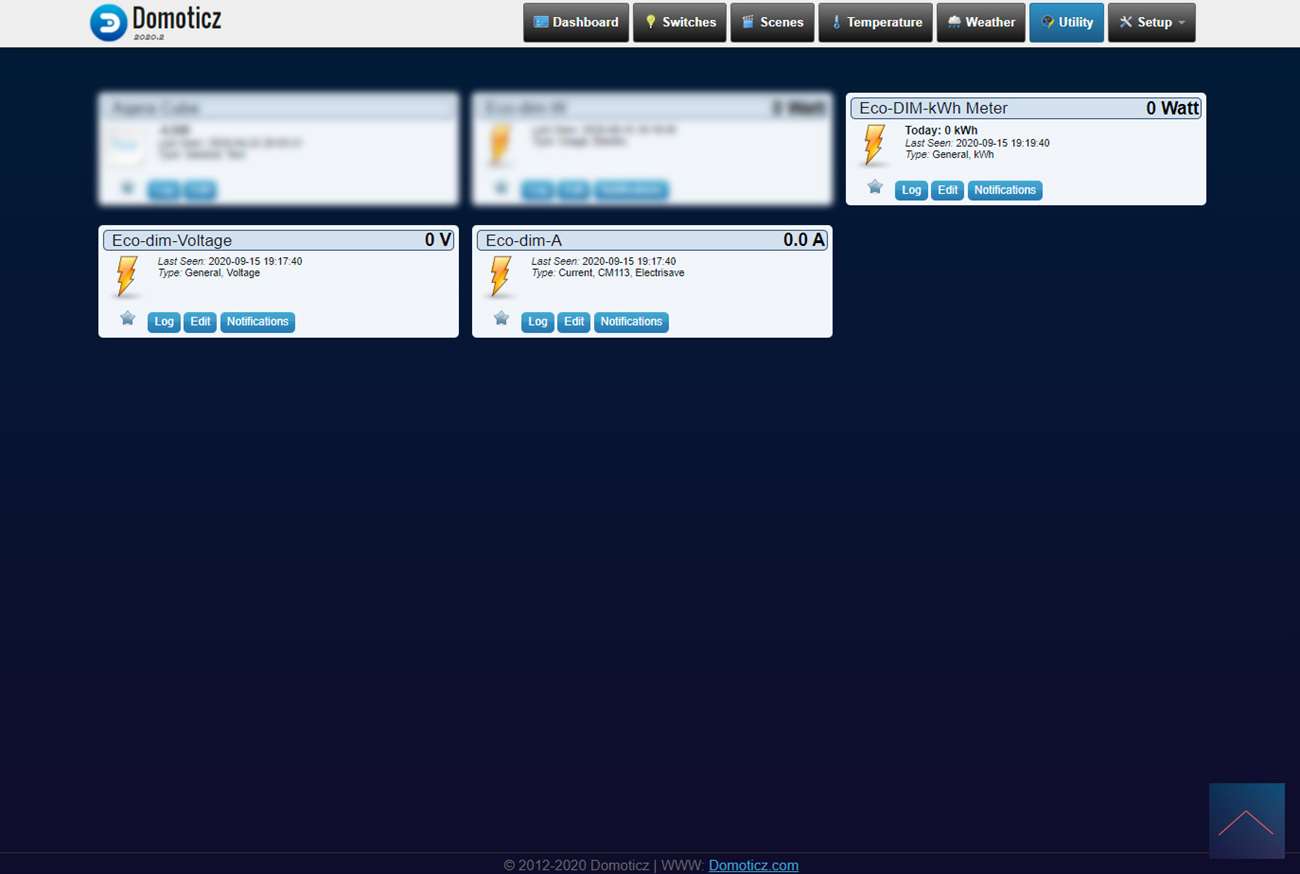 When I have added the devices to my dashboard I see an on/off switch and a dimmer. I also have Voltage, Watt, Ampere and kWh meter but these do not transmit any values (remain at 0).