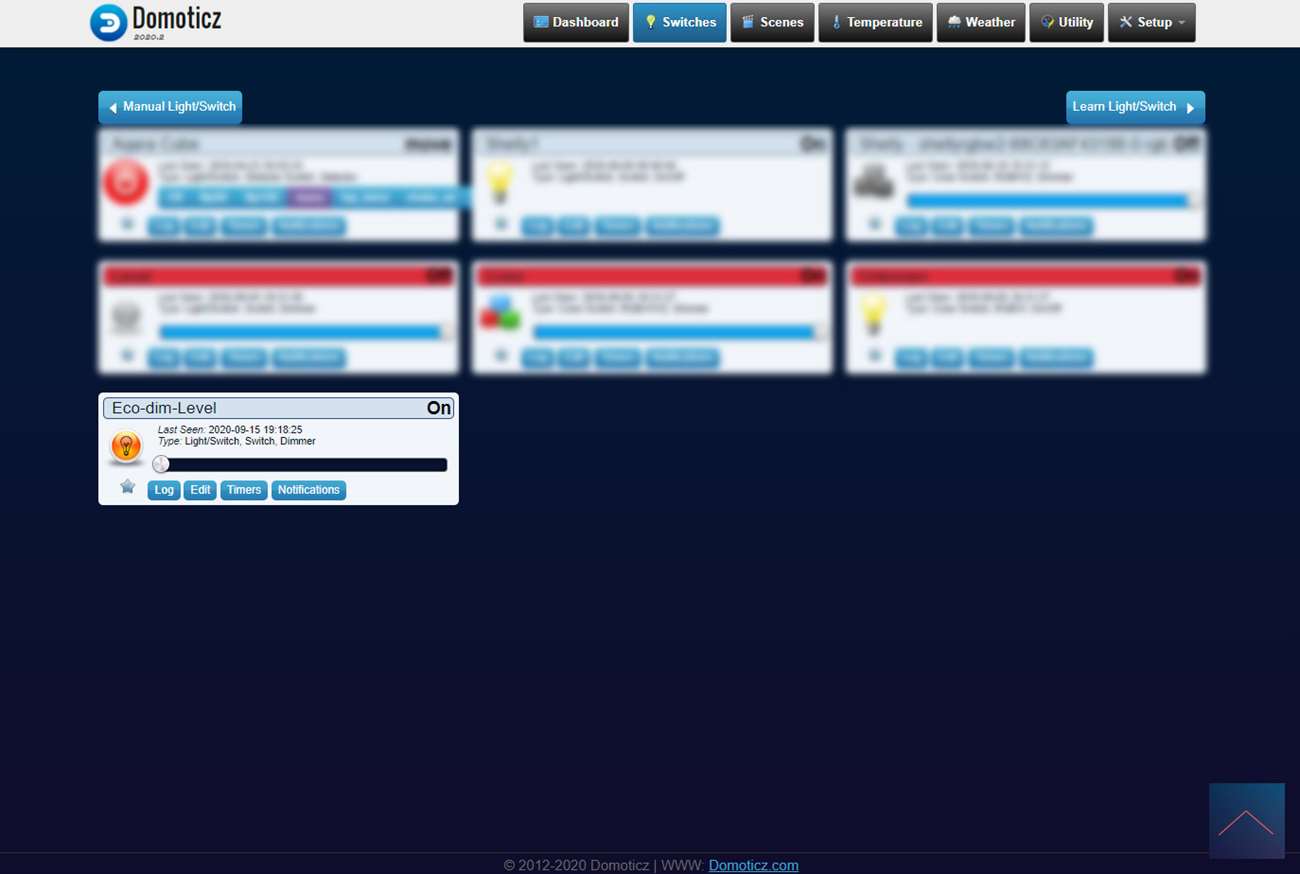 The first step is to get the power from your old dimmer/switch or. After this, you can remove it completely and install the Eco-DIM according to the supplied scheme. You can connect it 2 or 3 wires (without and with blue wire). Wait a while before turning on the power and log in to Domoticz first.