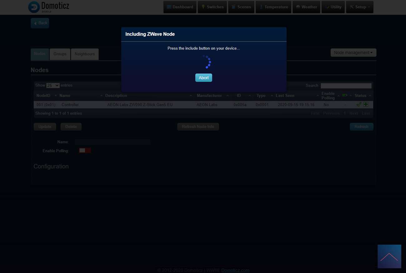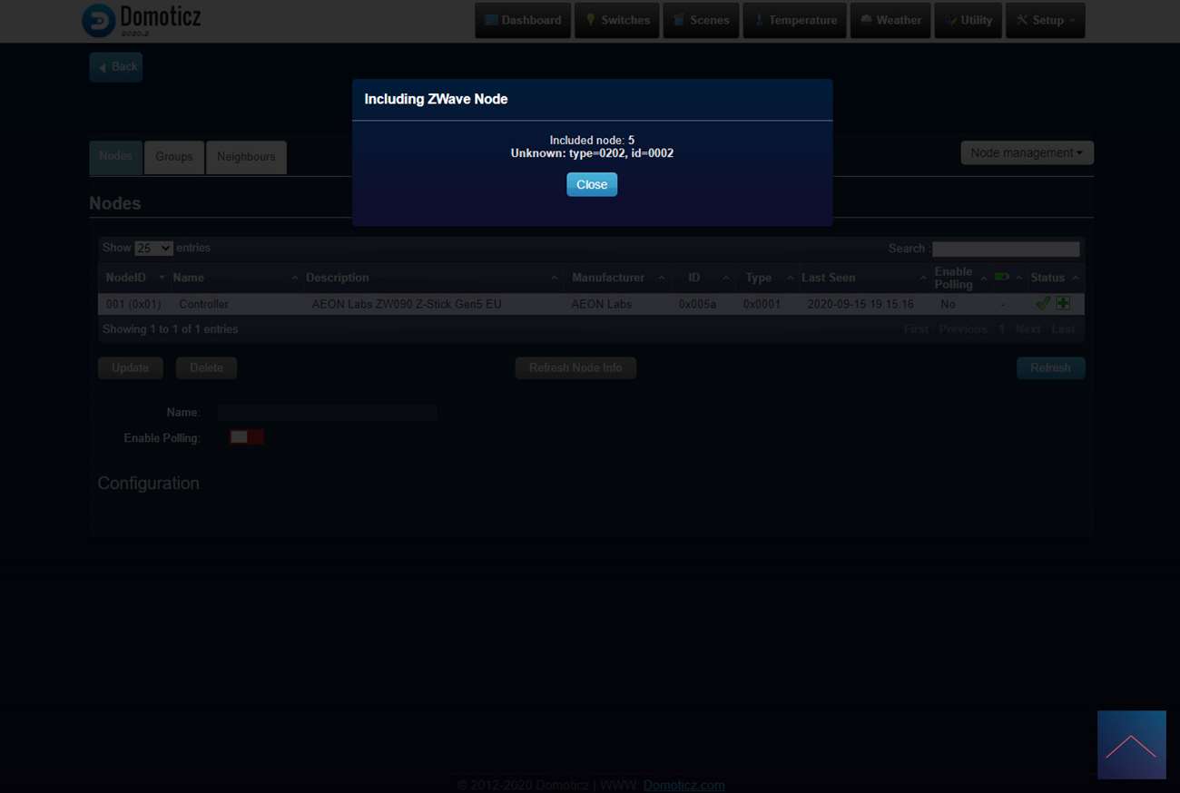 We are also going to install this dimmer on the Domoticz open source system. This is a free software package that works together with the Aeotec USB Z-Wave stick. Domoticz uses the open Z-wave database to add devices.