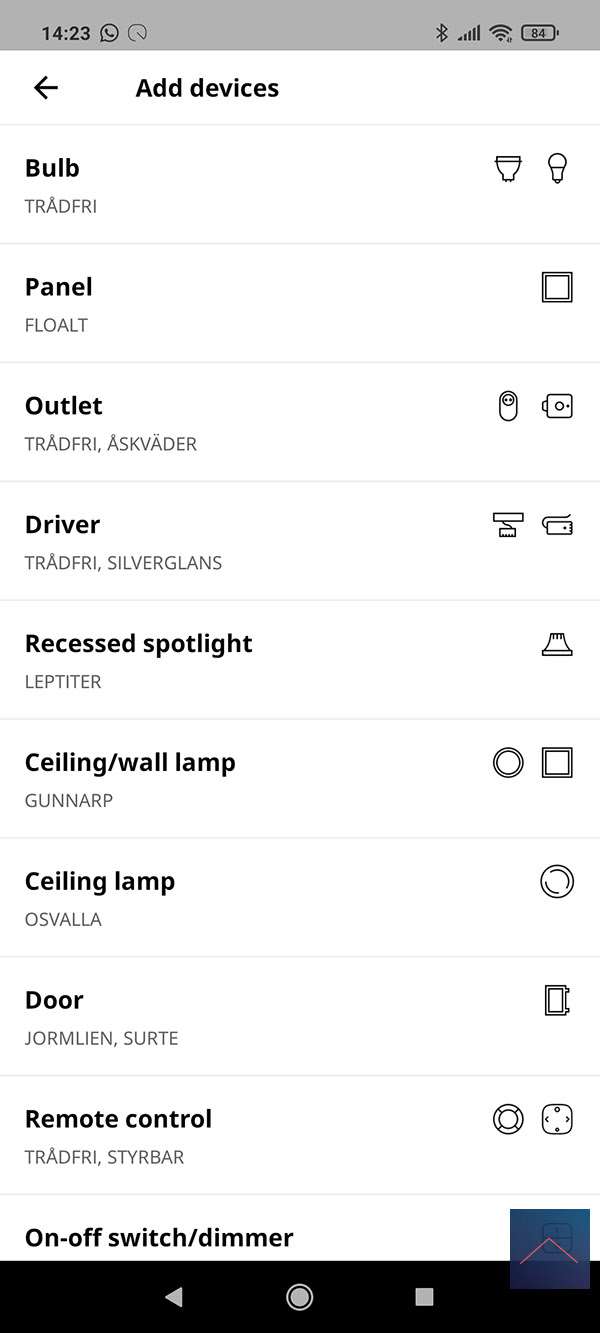 We now start the IKEA APP and go to "settings" and then to "manage lamps" and press the plus sign. The dimmer cannot be connected directly to the HUB, so this must be done via a remote control. We also include these.