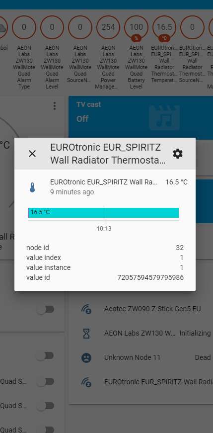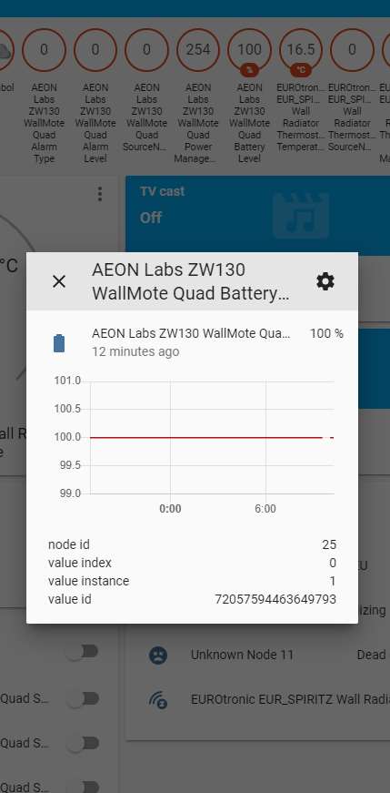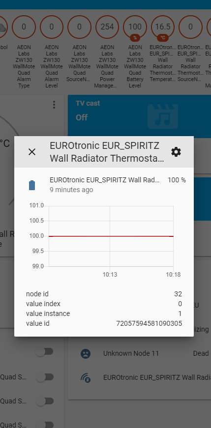 All configuration options are available so this saves searching. When I look at my overview I see a thermostat, battery level, set temperature and the ambient temperature. So totally complete.