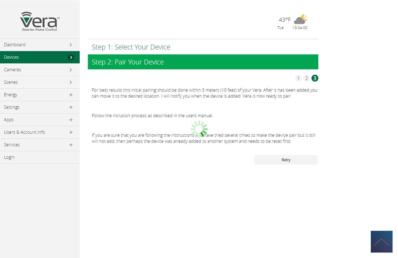 We are going to install this smart thermostat valve on the Vera. The first step is to log in and go to your devices and search for Spirit there. As we often see with the Vera, he was unfortunately not found. No need to worry, because adding "generic z-wave" is often possible. So in this case we do this too. If you have clicked on next a few times, the Vera asks you to put the thermostat in add mode.