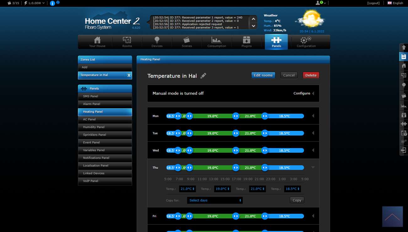 The beauty of the HC2 is that it has a Heat Panel. This allows you to control the heating in your house. You can create a heating schedule for each specific room. The tap is then automatically set to the correct temperature.