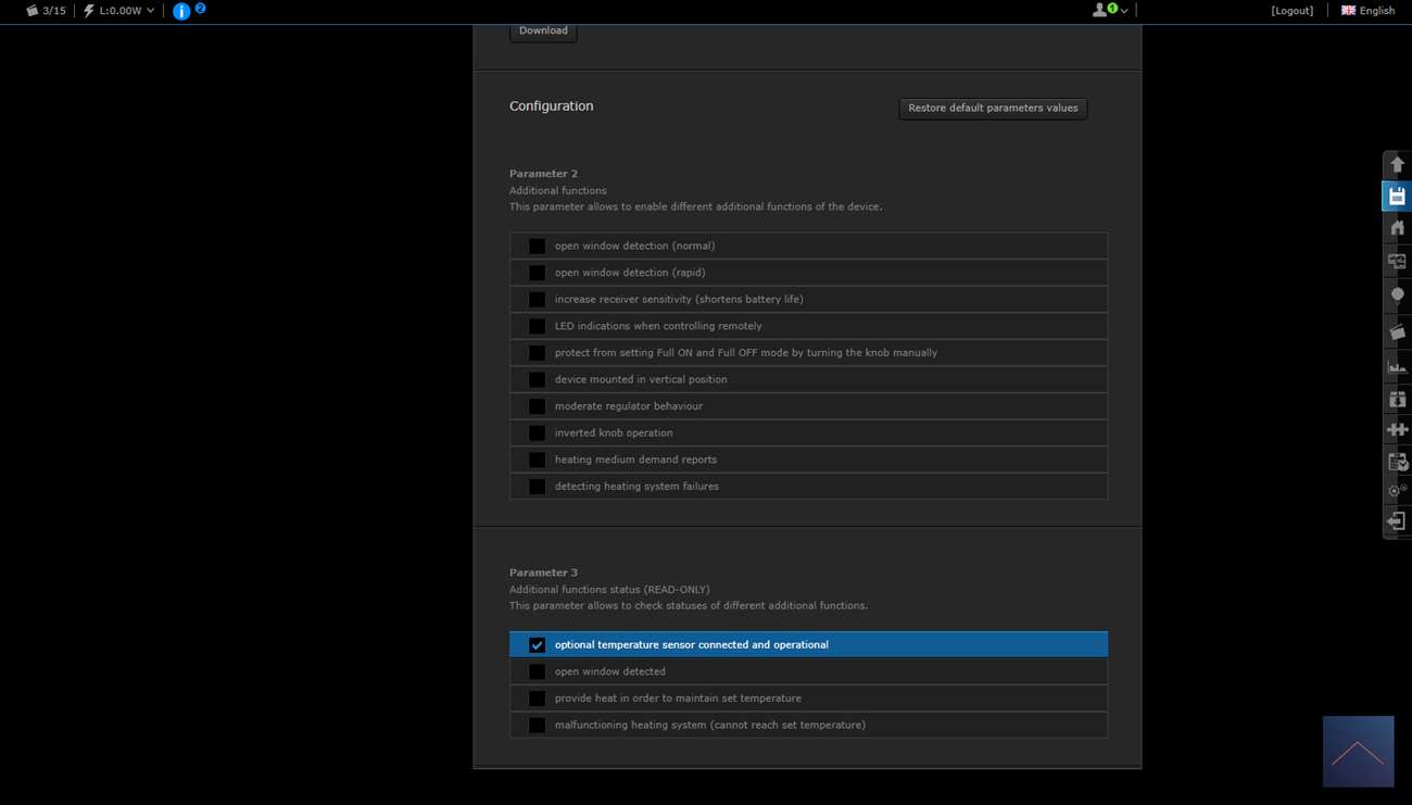 We see the temperature of the sensor, we can set the temperature of the tap, we can change the mode (off, heating and protected) and to top it all off we also see the battery level.
