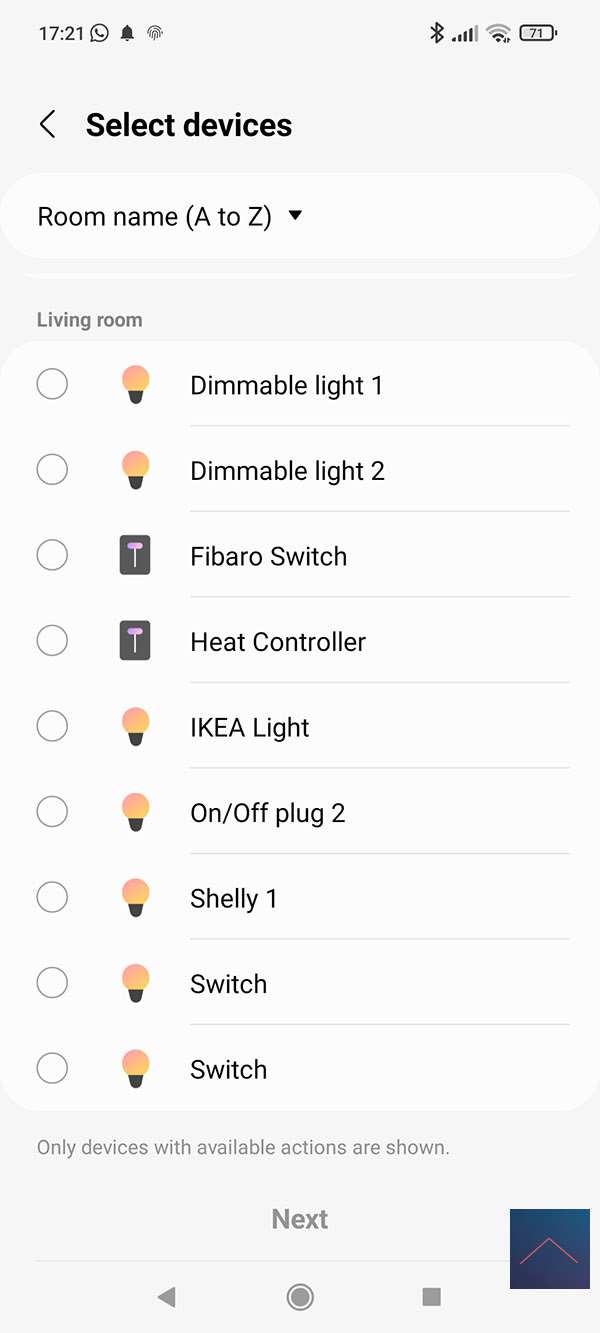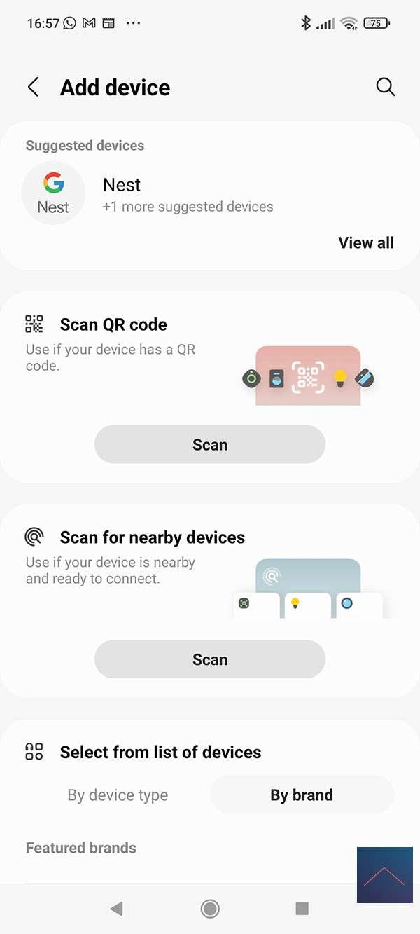 Now the faucet is ready to be added. We start the Smartthings APP and go to our devices and press the plus sign at the top right. We then select and press "add device". Unfortunately there is no QR code on the packaging of the Fibaro so we have to add it manually. You can do this by looking up and selecting FIbaro in the list with "select from list of devices". We then select thermostats and the APP indicates to click 3x on the add button at the bottom of the tap. We immediately see the LED of the tap light up and a scan of the DSK code is requested. Unfortunately we do not have this, but you can also enter it manually, the code is on the packaging (40149).