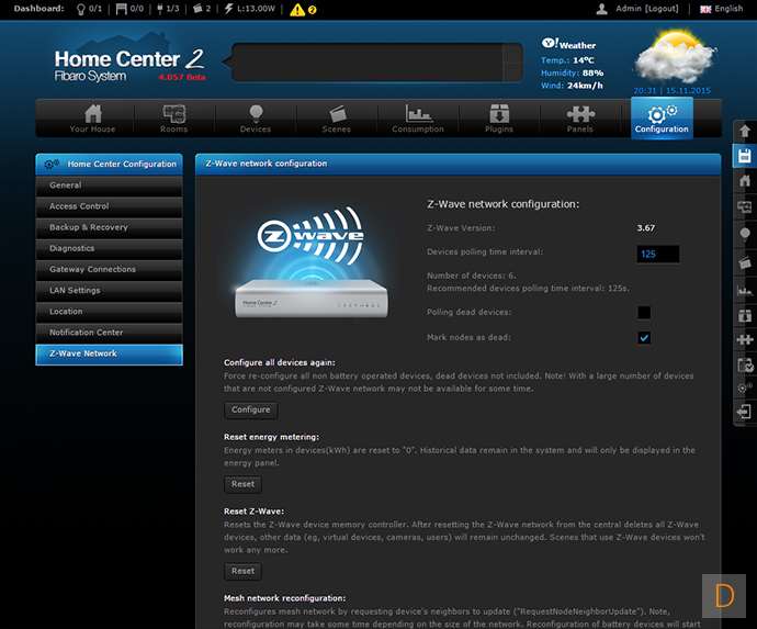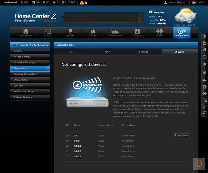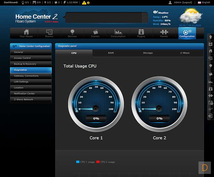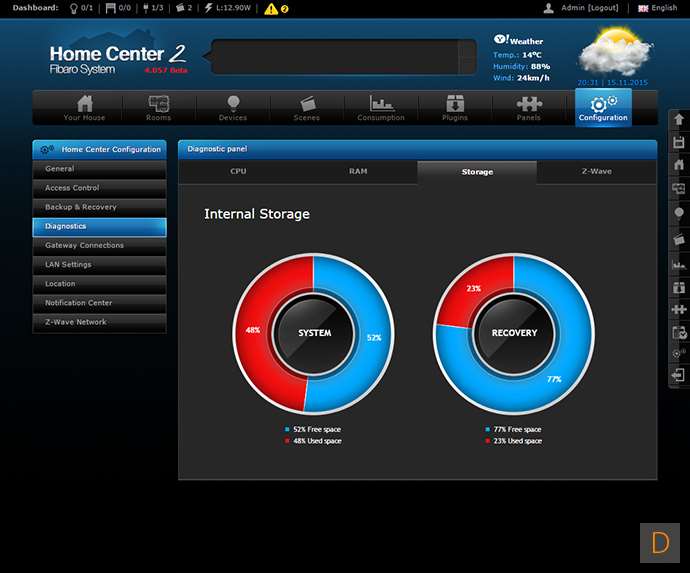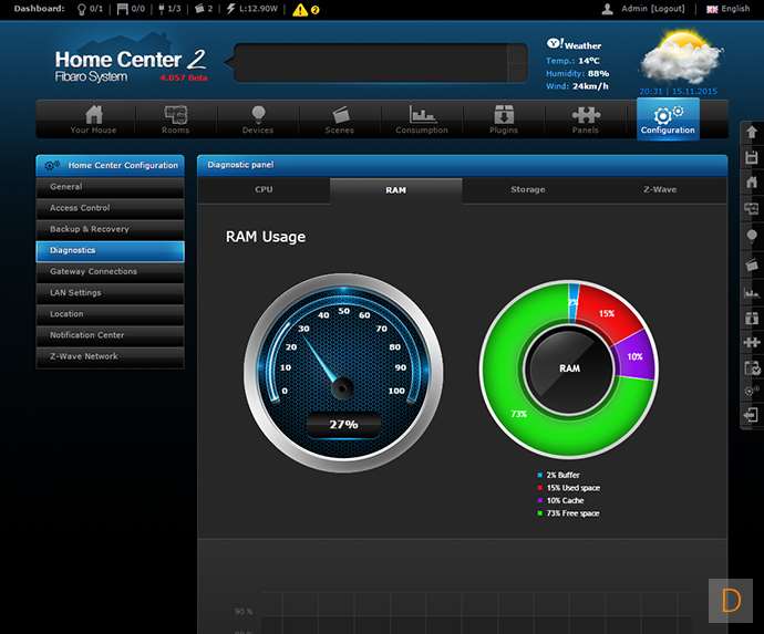 In this section, Fibaro has the ability to monitor your CPU, memory, writing space and your Z-Wave section.