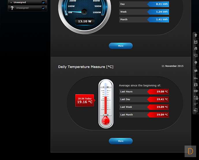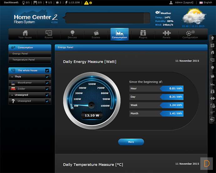 Another important part of the Home Center 2 is that you can keep an eye on your energy consumption. In addition, there is a possibility to monitor your temperature. Of course you need modules that support this.