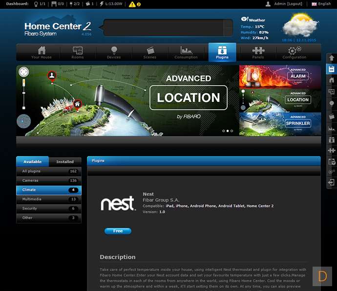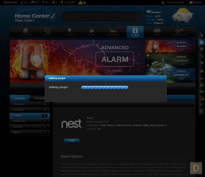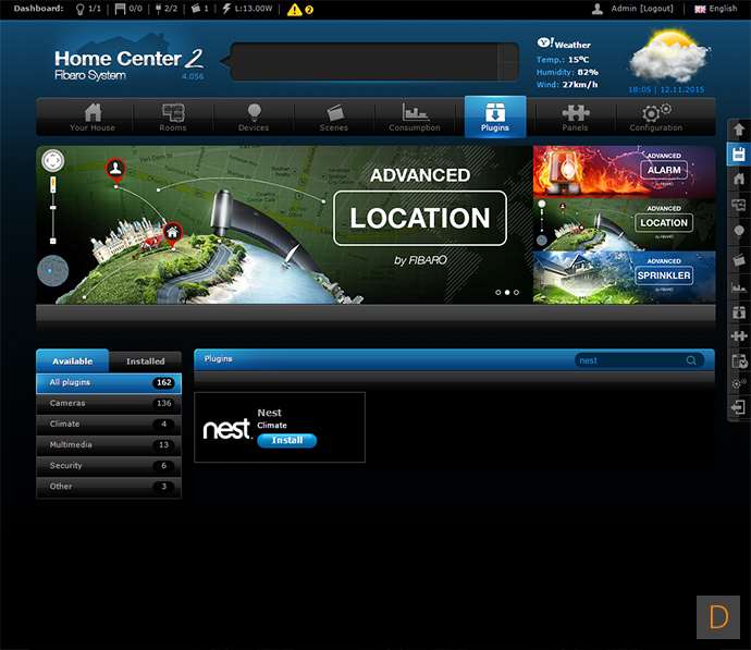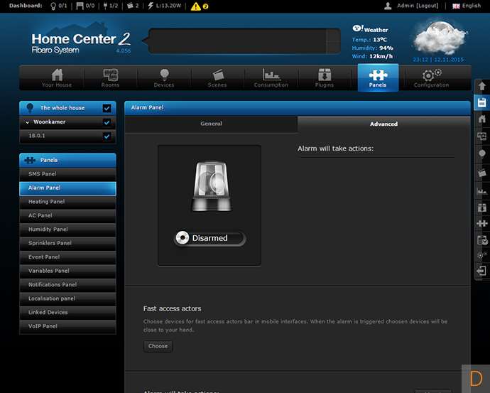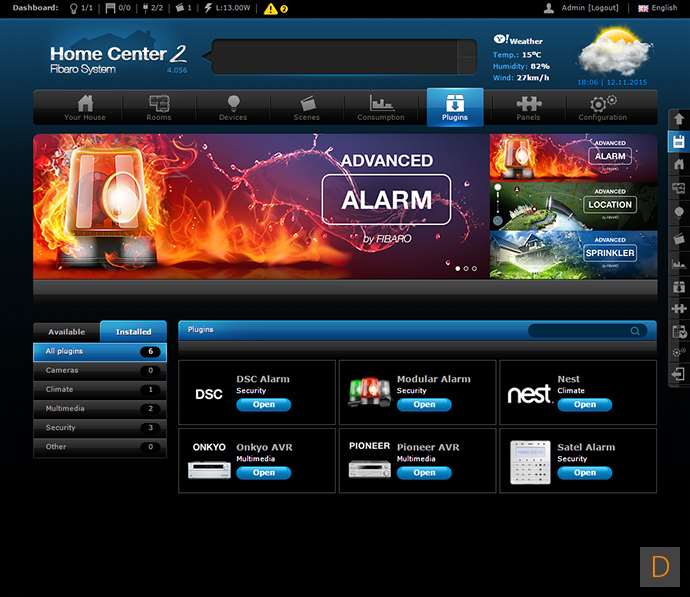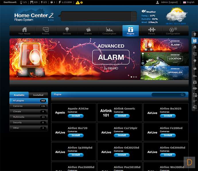In the plugin section you have the option to add IP devices, for example. You can, for example, add products such as a Samsung TV and your Onkyo stereo. But you can also build your alarm system with this.
