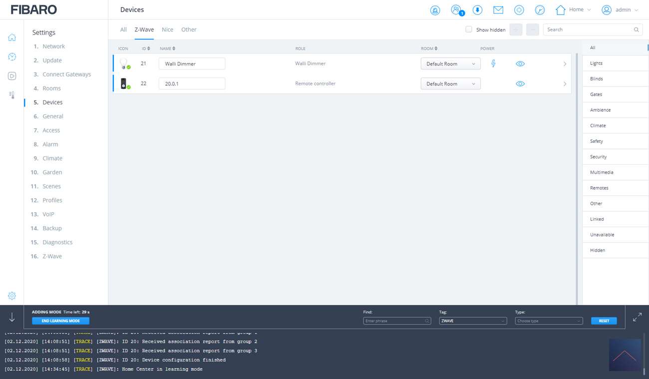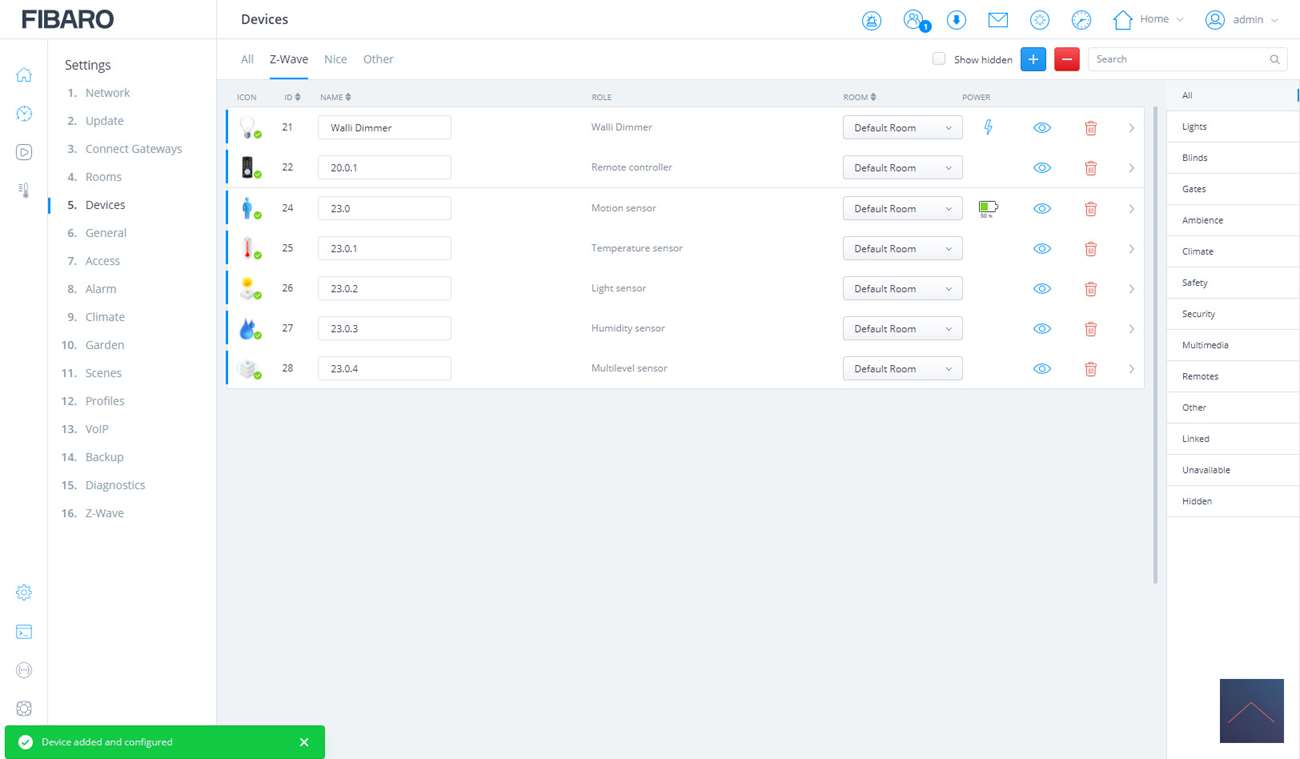 We are going to add several devices to see how this is done and whether it works at all. In addition to a Fibaro product, we also add a few other brands.
