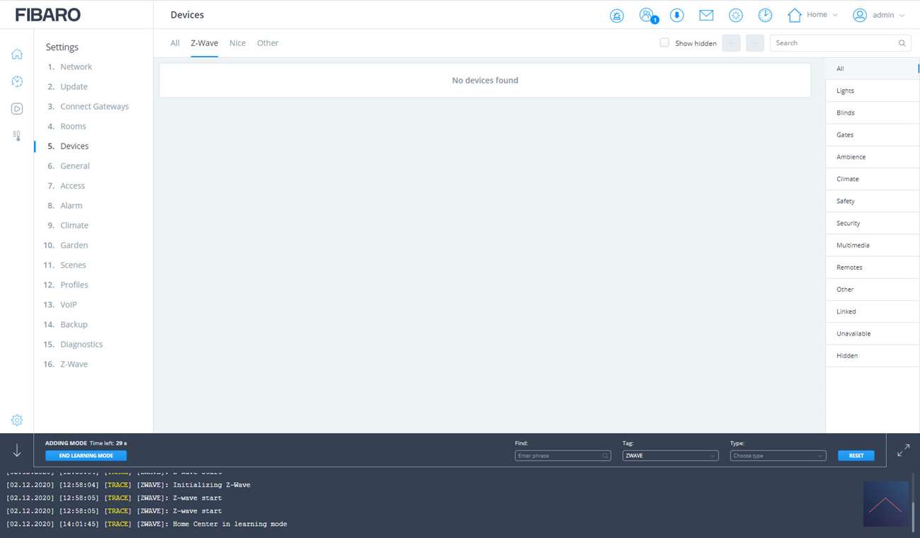 Now that we have everything installed, let's add some devices. The HC3 Lite has support for the Z-Wave plus protocol. So this is where we start.