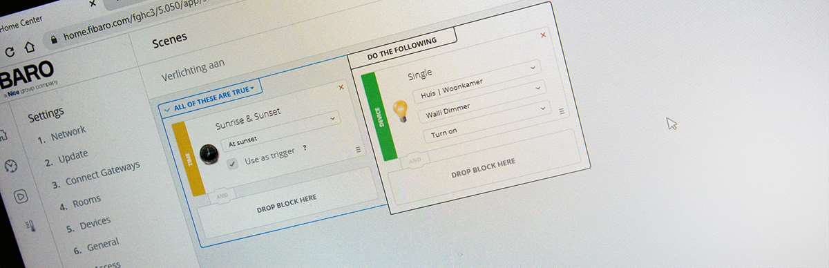 We've now added some devices so it's time to make our home really smart. You can make this possible by means of scenes. These are rules with conditions that must be executed.