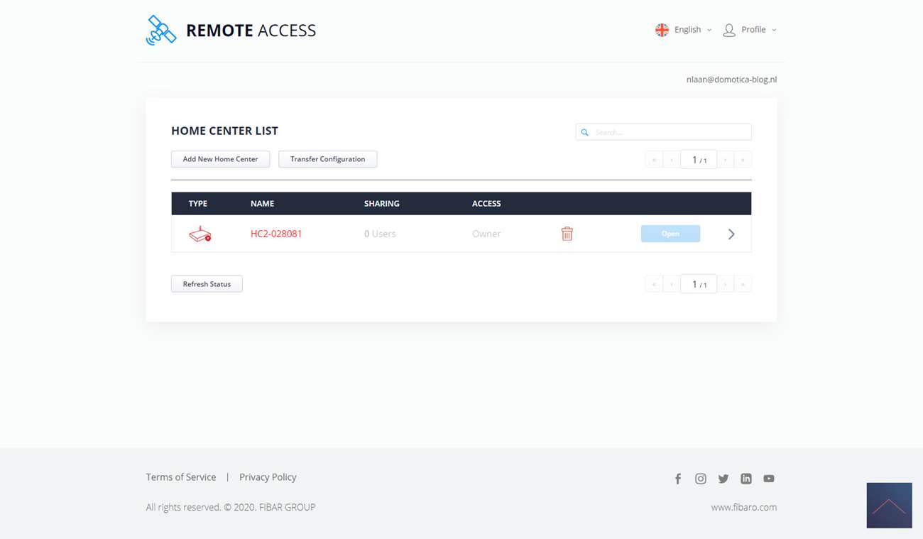To make this possible you have to create a Fibaro ID. To do this, you must follow the steps during registration. Good to know is that you can find the serial number and MAC address on the bottom of the HC3.