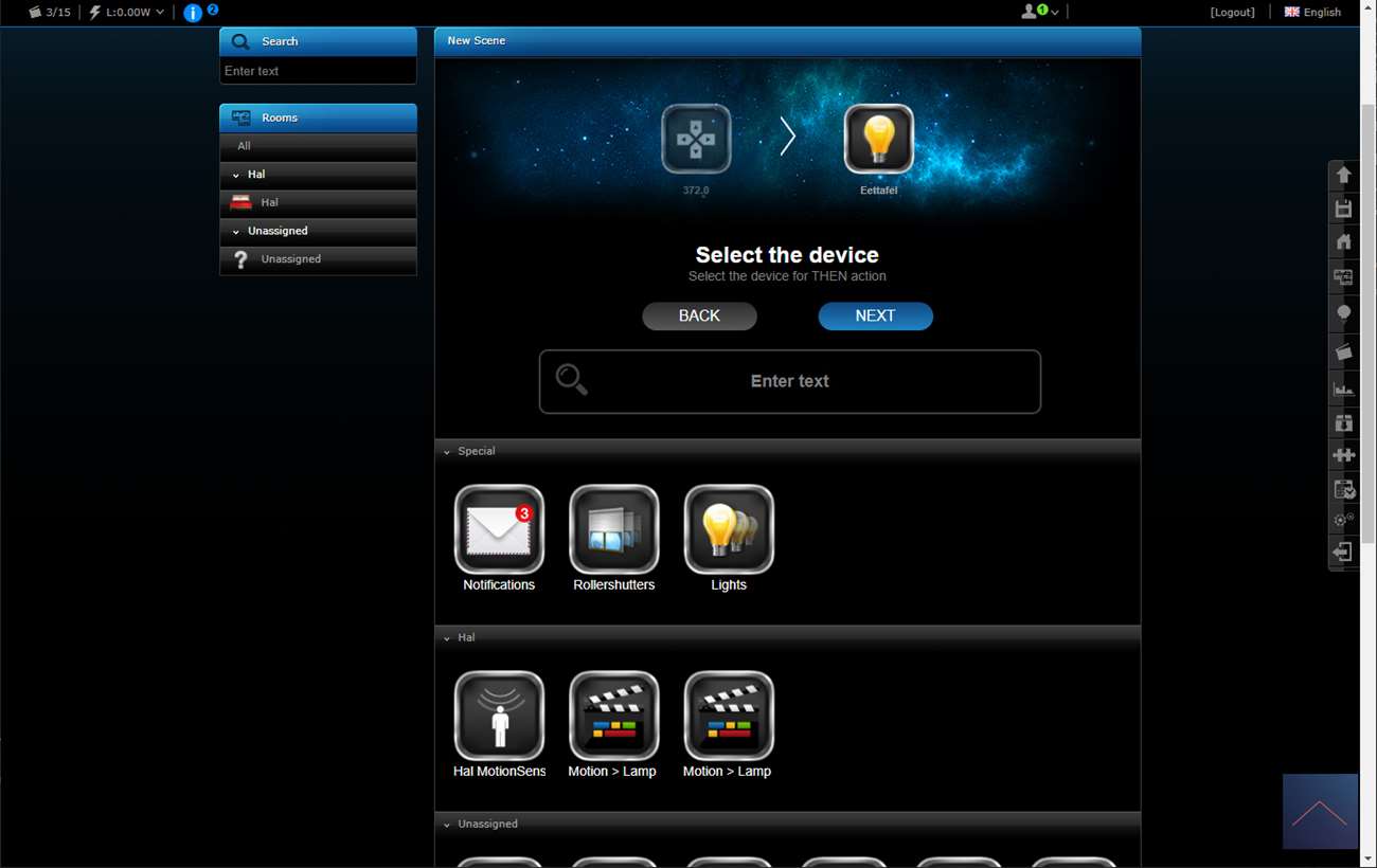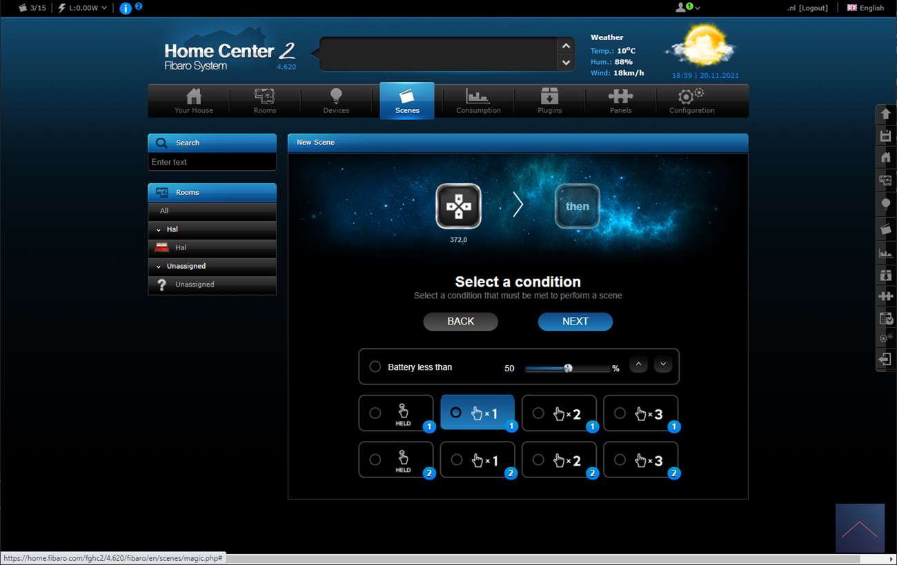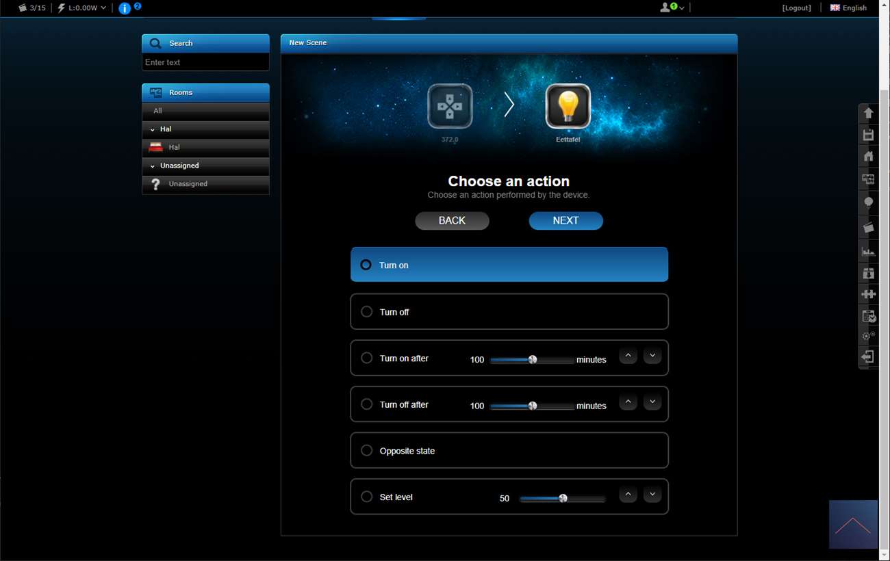 We go for this last variant and we use the magic scenes for this. We use the 1x push as a trigger and then turn on the lamp.