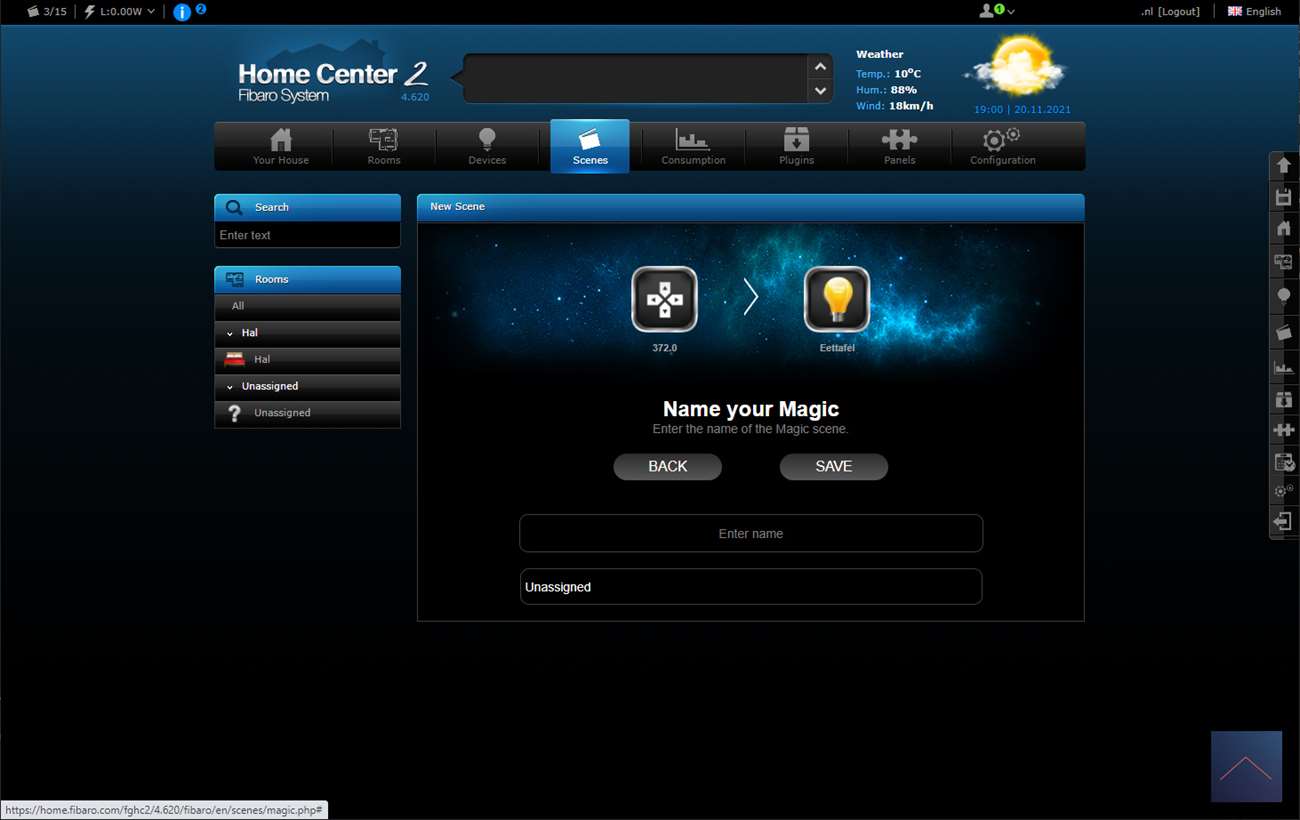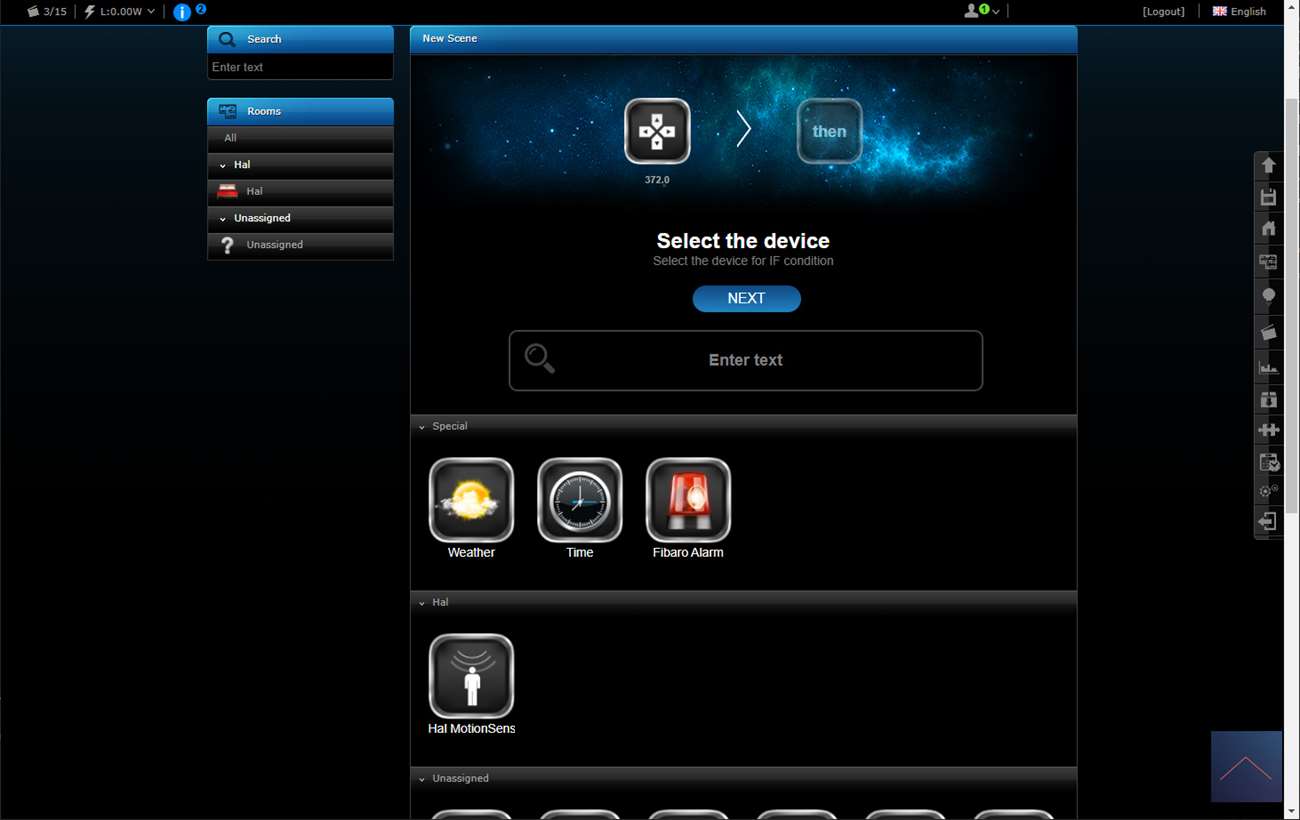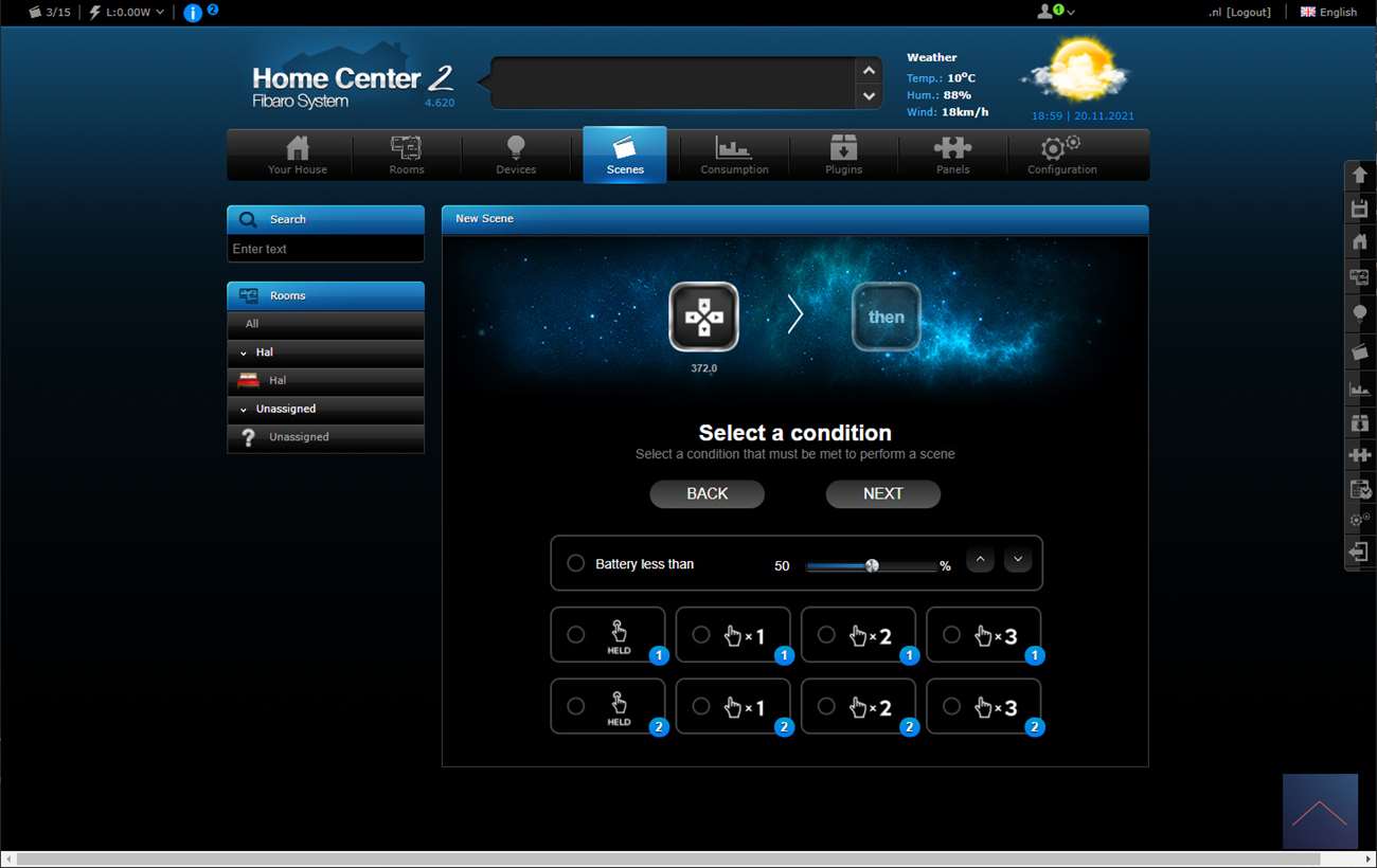 We go for this last variant and we use the magic scenes for this. We use the 1x push as a trigger and then turn on the lamp.