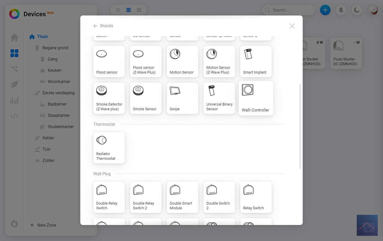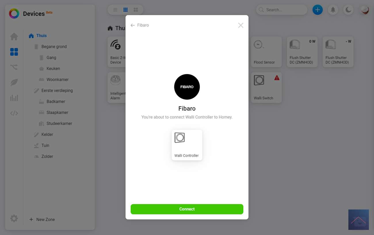 To install it, go to my.homey.app (or you use the APP) and click on the plus at the top right. Now search for Fibaro and click on Walli Controller. Now we need to remove the tab near the battery, you can do this by removing the back of the Walli.