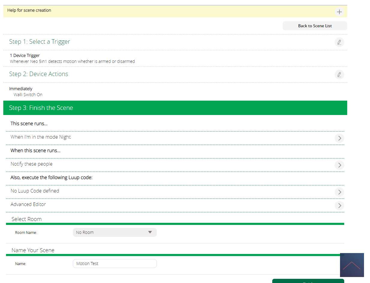 As an example, we show that if there is movement in the hall, the Walli must be switched on.