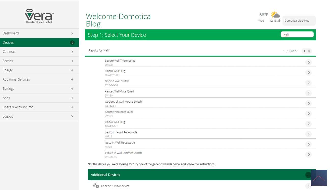 To do this I log into the Vera and go to my devices. Then click on "add device" and click on "generic z-wave" because if you search for Walli it is not in the list. Then press next a few times until you reach the screen that asks to put the switch in learning mode.