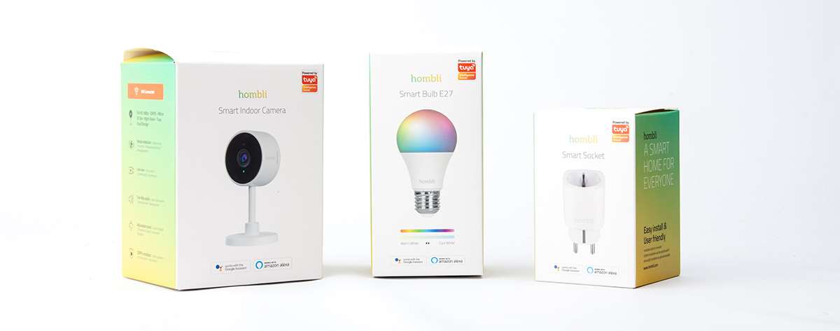 We have received a test package from Hombli with a Smart Socket (power switch), a Smart Bulb - RGB & CCT (lamp) and an Indoor Camera (indoor camera). A good mix to get to know the products of Hombli and discover what we can do with the App.