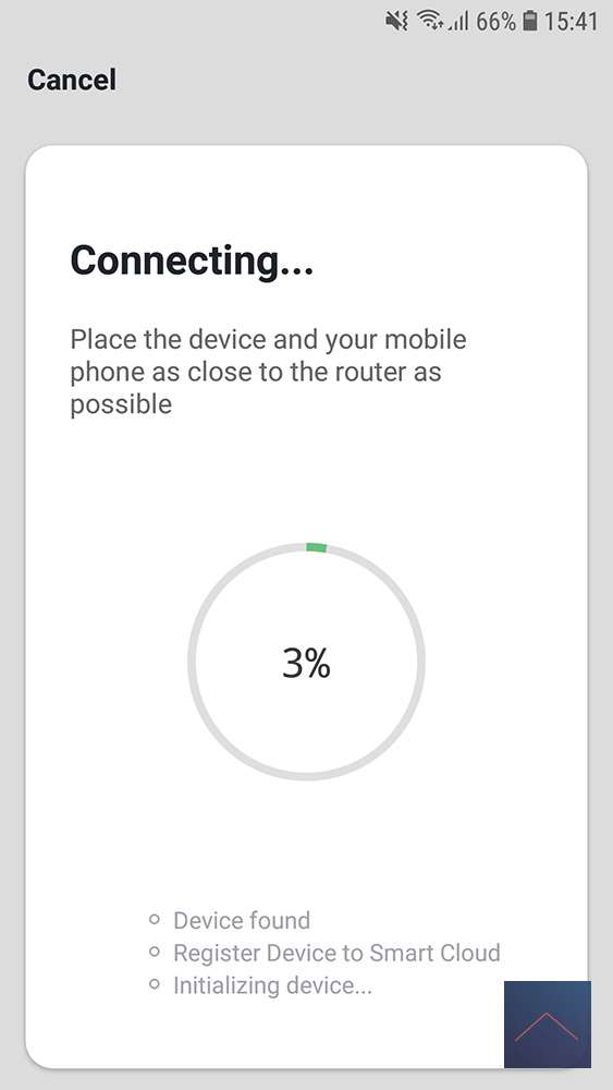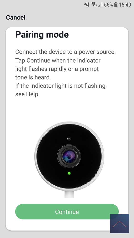 We are going to add the camera and in the main screen of the Hombli App we select right above the + button and under Camera we select the Indoor Camera. We get the message to turn on the camera and “Tap continuously” until the light flashes. After a short start-up, the camera will start flashing itself. After this we have to enter the WiFi network and password, this camera also only works with the 2.4 GHz network.