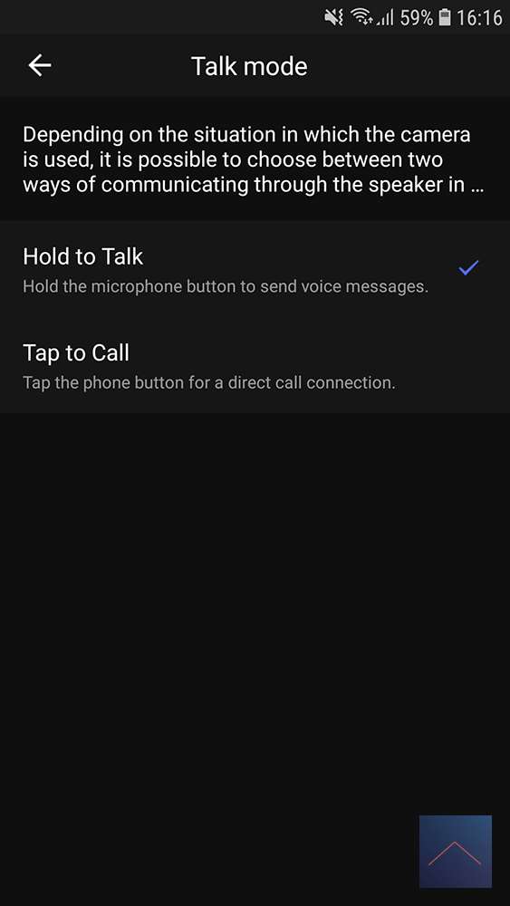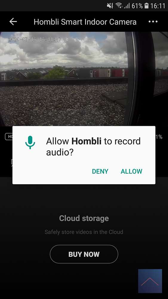 When we click on the microphone icon, we are asked whether we give permission for the Hombli App to use the microphone. After agreeing to this, we can hold down the microphone to be able to talk through the camera.
