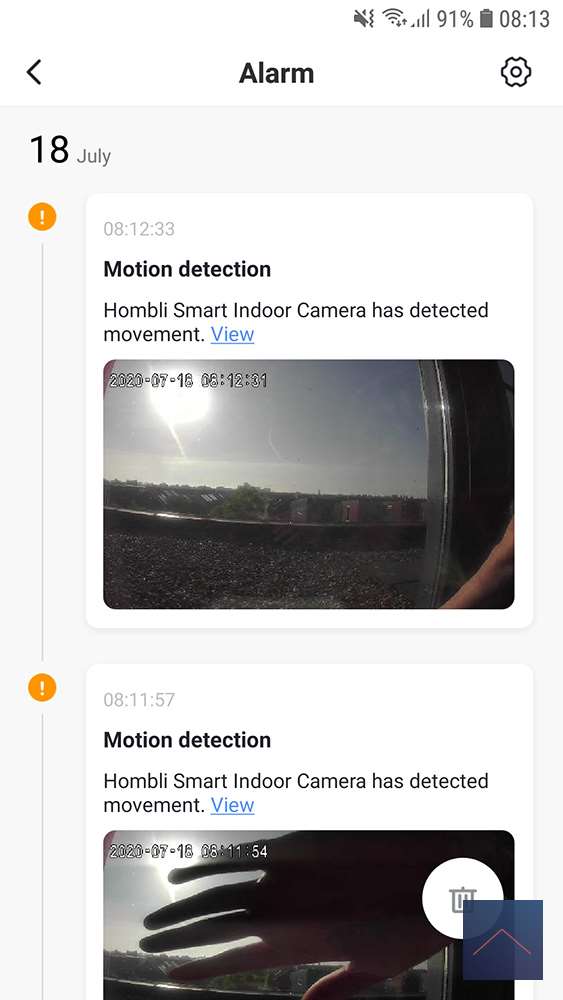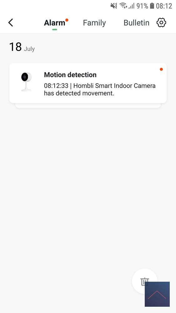 If you have motion detect on, you will receive a notification of motion on your mobile, if you click on it you will immediately go to the Alarm tab of the Message Center of your Hombli App.