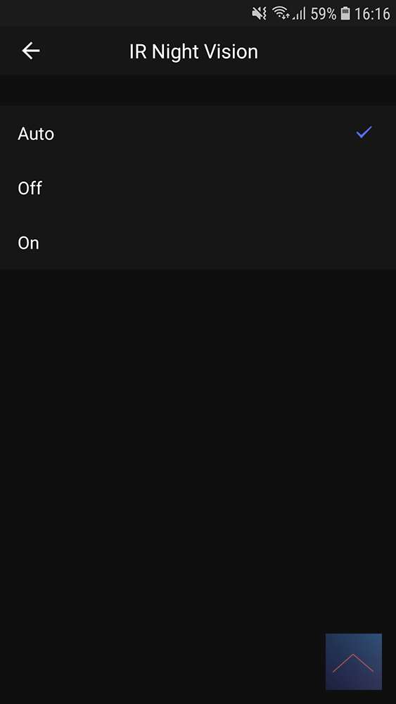 IR Night Vision can be set to automatic, on or off. You can use this to ensure that the IR LEDs are automatically switched on when it is dark. This allows you to take a good picture even when it is dark.