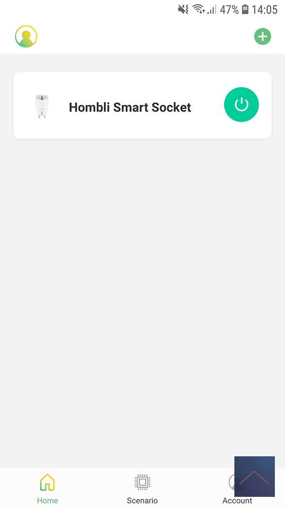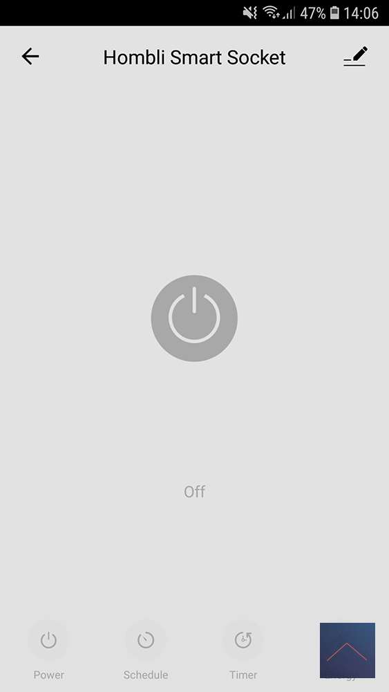 Now that the plug is installed, we will show all the possibilities in the APP. In the main screen we see the device “Hombli Smart Socket” with an on and off button with which we can operate the whole. If we click on the name, we enter the main screen of the Smart Socket and there is a large on and off button in the middle, which you can also use to switch the power supply on and off.