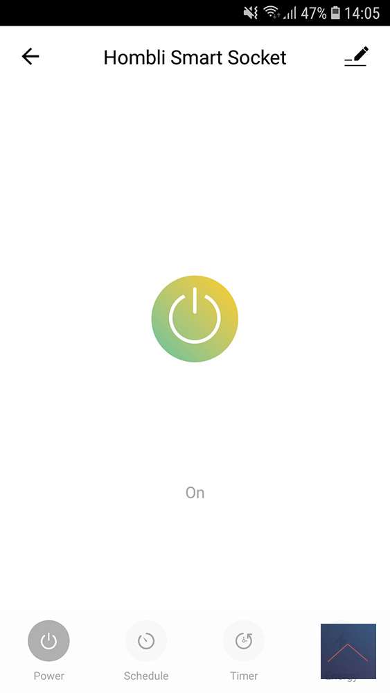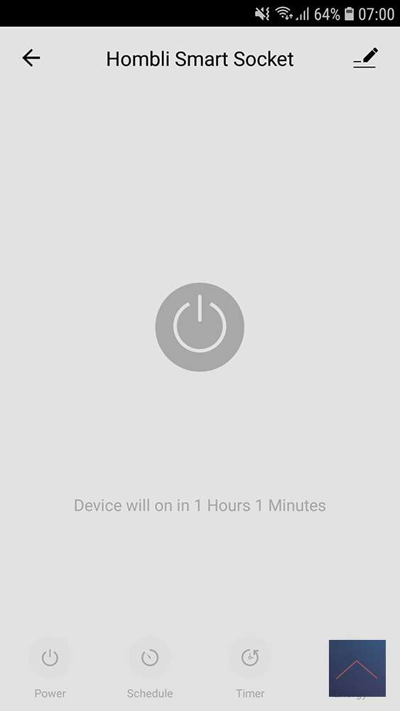 At the bottom you have 4 option; Power, Schedule, Timer and Energy. We are in the Power tab, which is only visible when the socket is on.