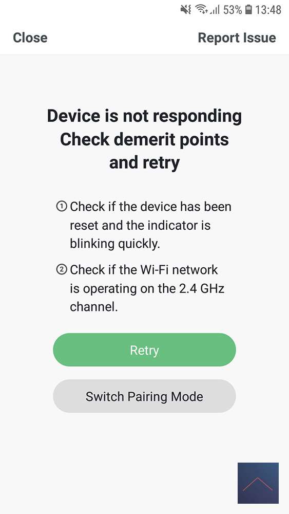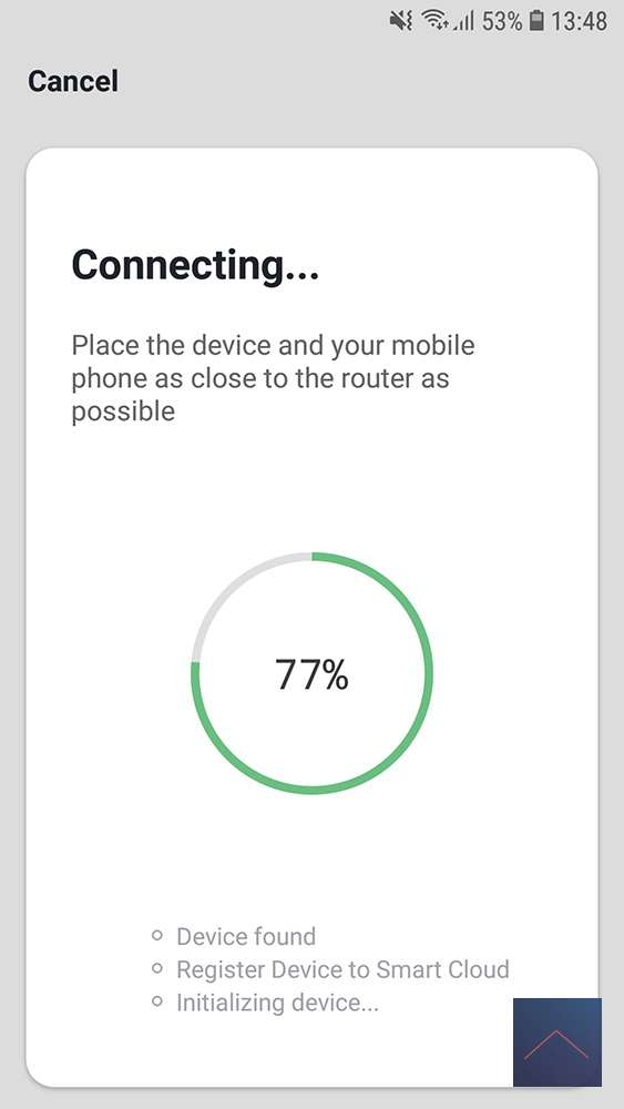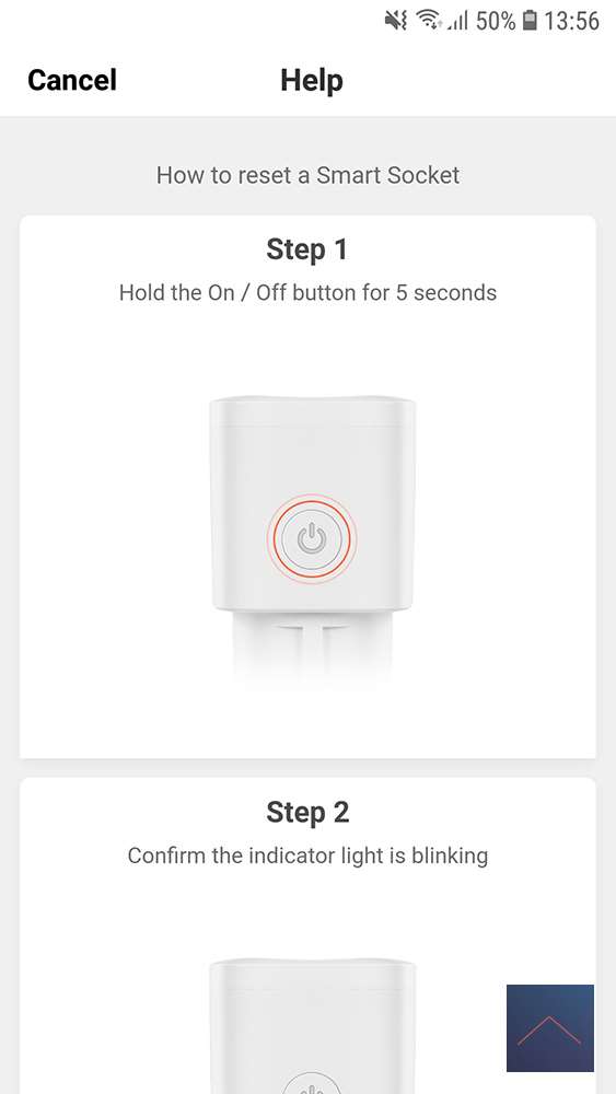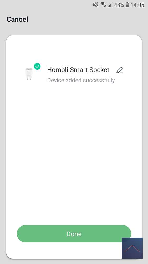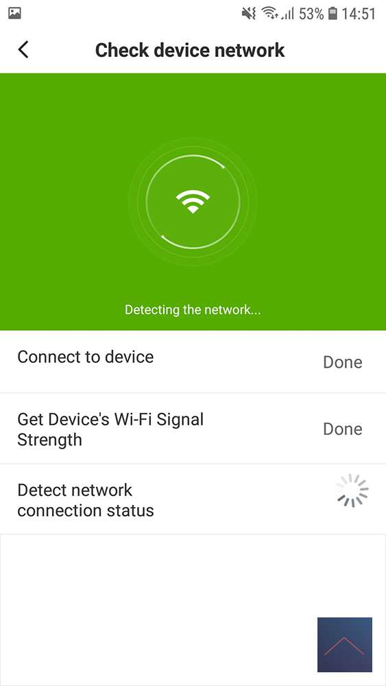 In the next step, the APP will search for the Smart Socket. After waiting for a while, the APP indicates that it cannot find the Smart Socket. I select Retry and first get a short guide on how to make the indication light flash. It really blinked, but okay, we do it again and select Continue. We arrive in the same screen as before, we have to enter the WiFi data again and the search starts again. Unfortunately nothing found… I unplug it and wait a while and then plug it back in. It will automatically flash again as it has no settings yet. We carry out the step-by-step plan again and the APP will search again. Because I have the feeling that it is not going to work again, I just press the on and off button of the Smart Socket for 100% and suddenly the App sees the Smart Socket and indicates that it has been added successfully. Strange but it worked, I hope the other products are a bit easier. I click on “Done” and immediately go to the main screen of the Smart Socket, I go back to the main screen and there is the Smart Socket with a nice photo icon of the product.