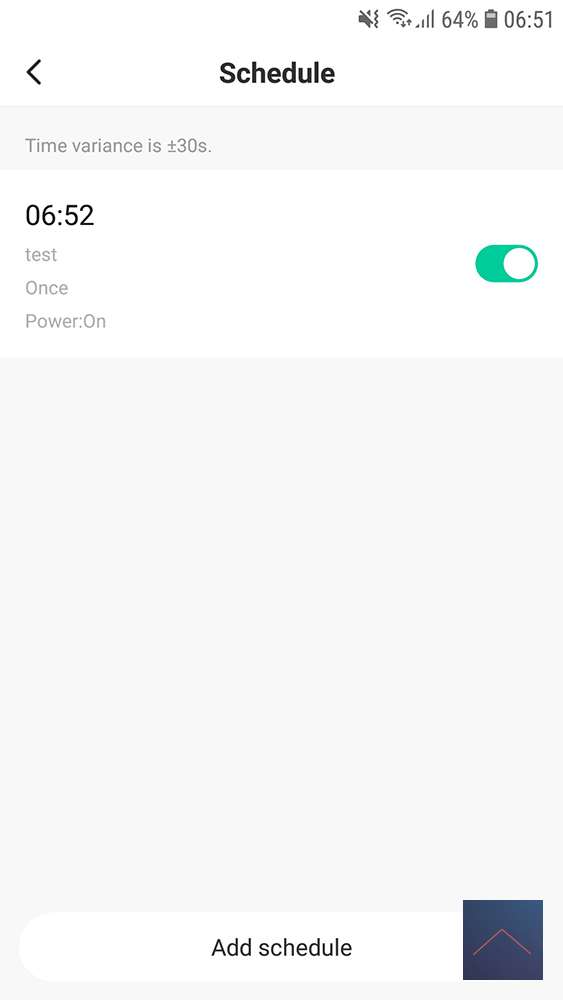 The Timer can be used to switch the socket on or off over a certain period of time, switching on or off depends on the position in which the socket is currently located. So if the socket is off, the Timer will turn on the socket and vice versa. You select the hours and minutes with a maximum time of 23 hours and 59 minutes. For the test I set the timer to 10 minutes and in between I had the schedule switch the socket on and off once, unfortunately the timer was no longer visible on the main screen and the socket did not turn on after 10 minutes. So keep in mind that if your schedule turns your socket on or off during the time of the timer, your timer will expire.