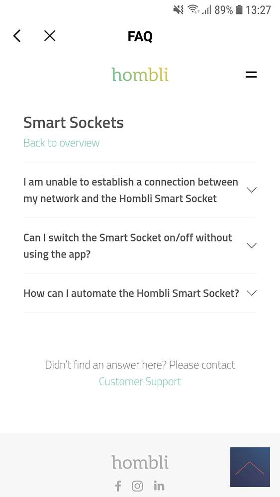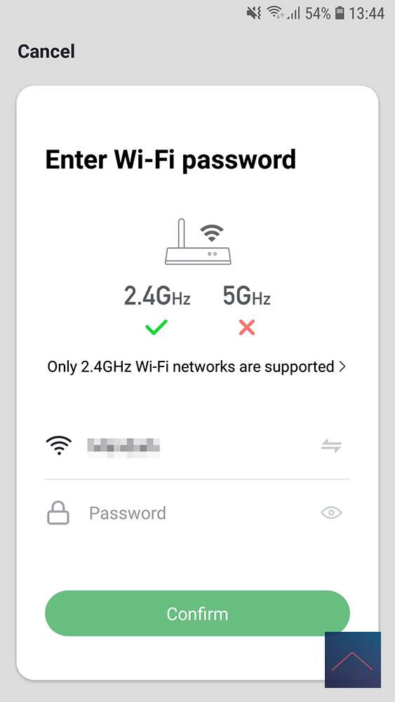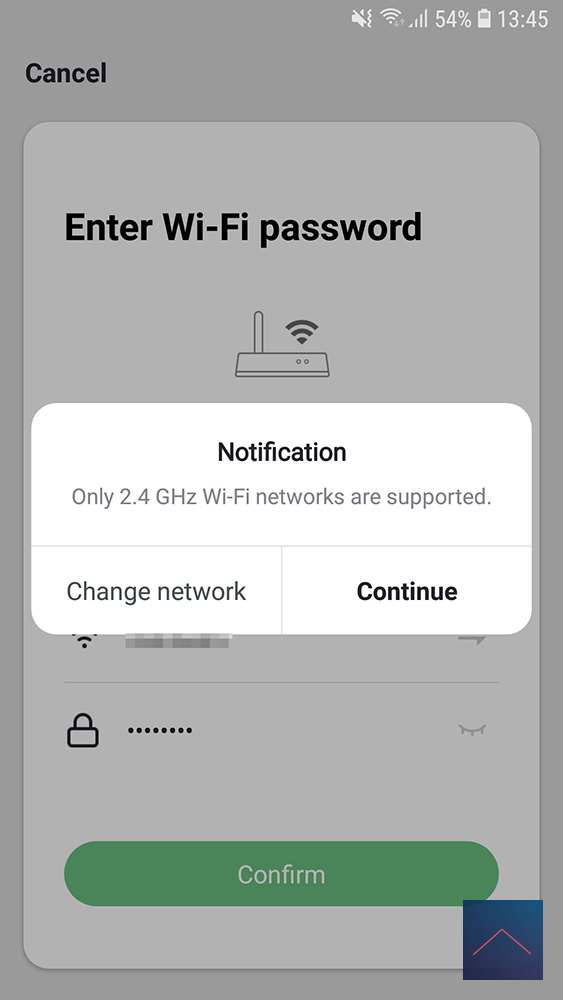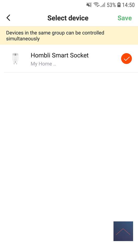 We open the Hombli APP and choose “Add device” in the main screen. We are now given a choice of which Hombli product we want to add. We select the "Power for the Smart Socket" and get to read the manual with which steps we have to perform. Good, the Smart Socket is plugged in and the indicator is flashing. Now we have to indicate which WiFi connection we want to use and the password for it. Now there is a message that only 2.4 Ghz WiFi networks are supported. A bit of a shame as 5 Ghz has been around for a while. On the other hand, the 2.4 Ghz range is slightly better. Which can help in a house with only 1 WiFi point.