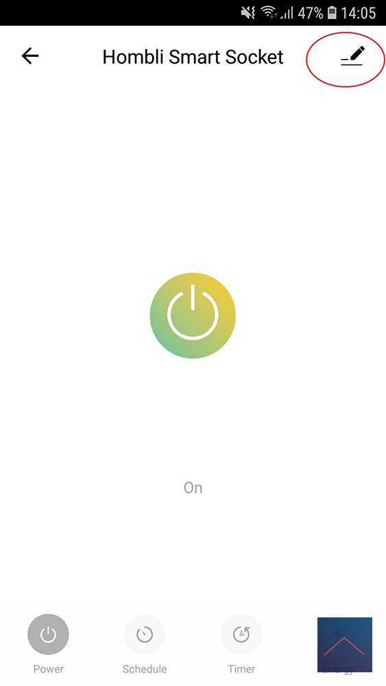 Back in the main screen of the socket we see an icon of pen with lines in the top right corner, if we click on it, we enter the settings of the socket. Unfortunately this is not indicated on the page, because this page has no name at the top.
