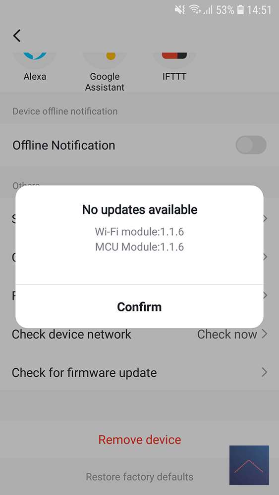 Below that you can use Check for firmware update to see if you have the latest software on the socket. There is no option to do an update automatically or manually.
