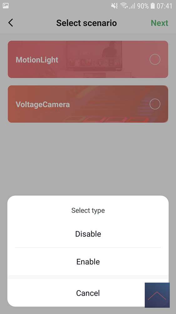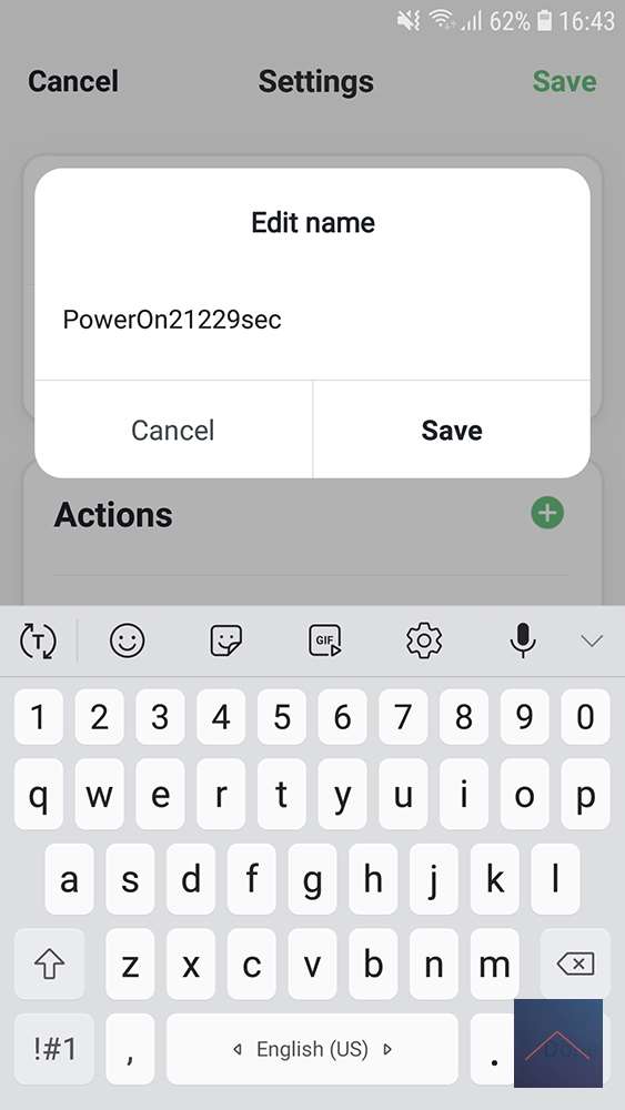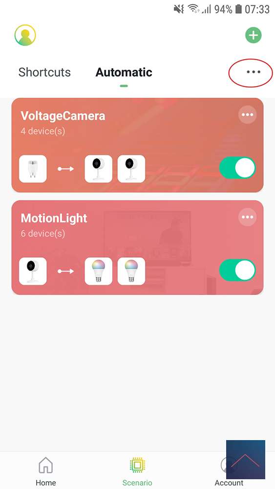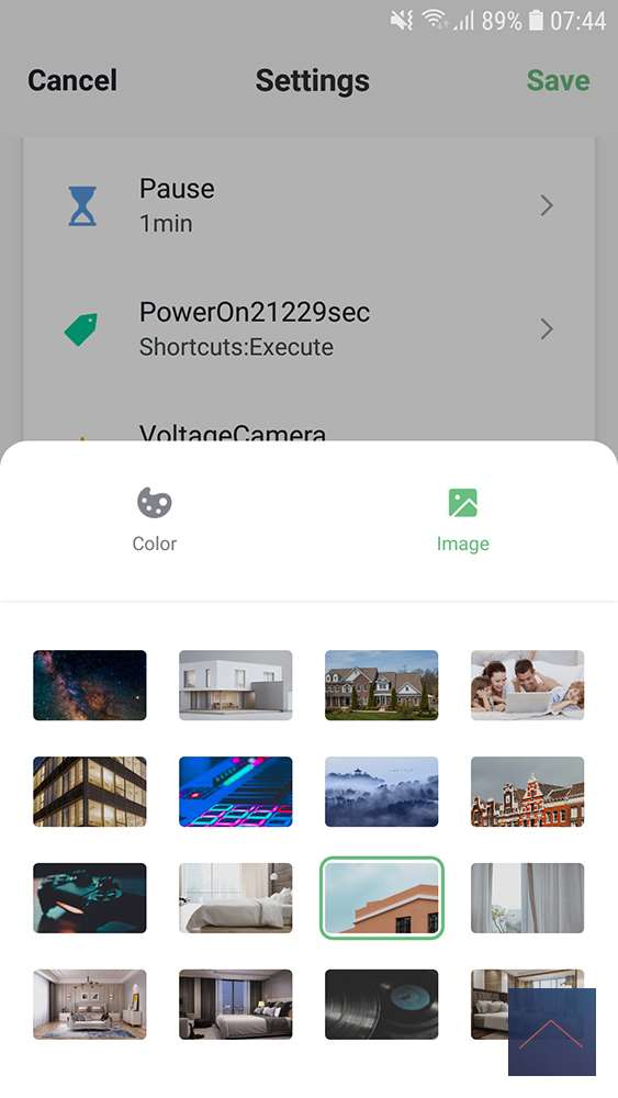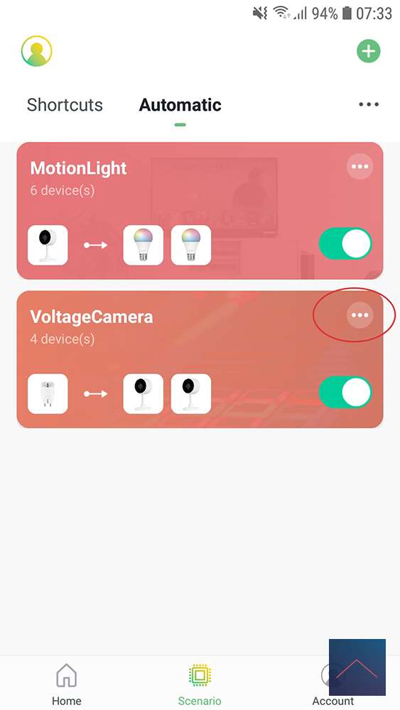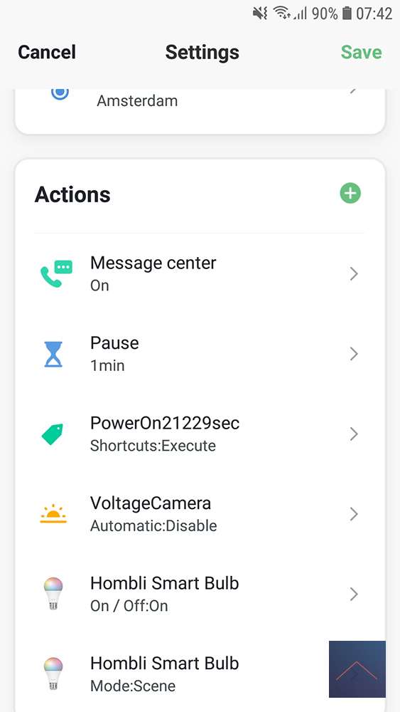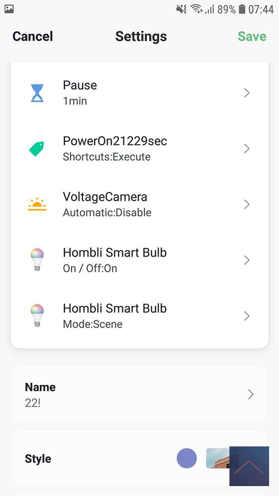 If I want to receive a message first, then a pause of one minute, then the shortcut PowerOn21229sec must be executed, then the automatic “VoltageCamera” must be switched off and finally the bulb must switch on with a certain scene. With scene we can not select which scene we want, finally we give it a name color and photo and save it.