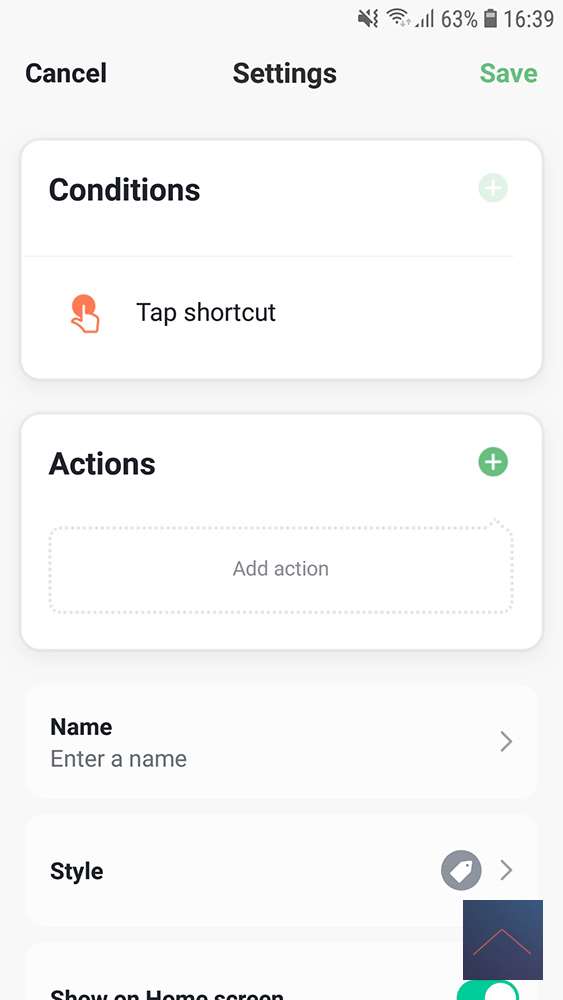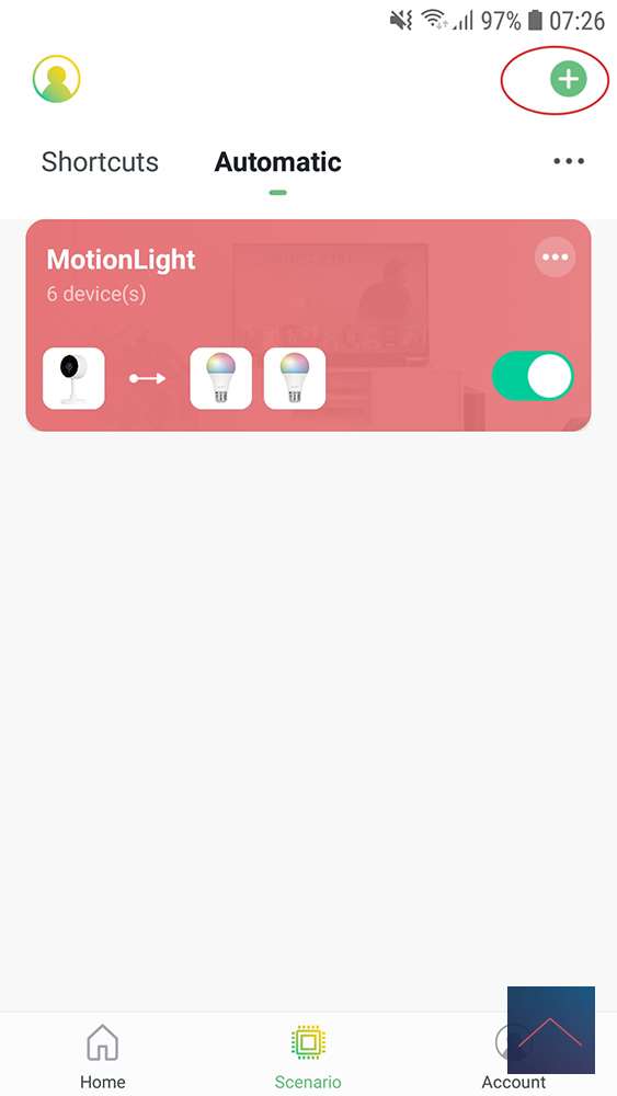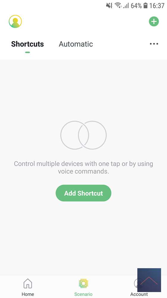 If you want to make your home really smart, you also need to be able to automate things. With the Hombli, Scenario has 2 options for automation: Shortcuts and Automatic. We will first make a Shortcut by clicking on the Add Shortcut in the shortcuts tab of Scenario, this is also possible via the + at the top right of the screen.