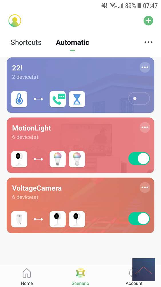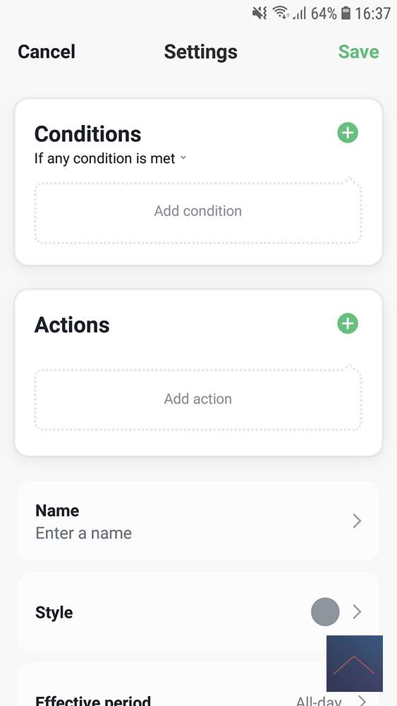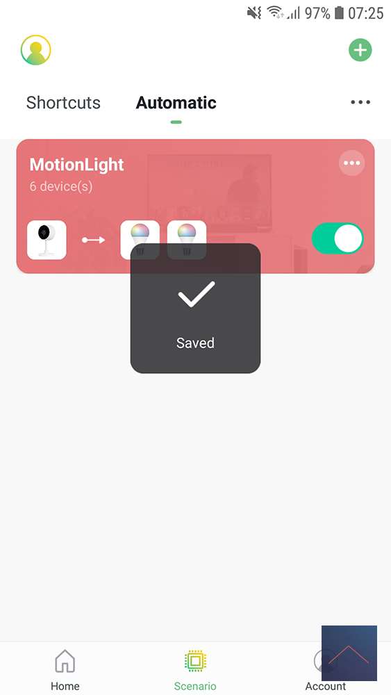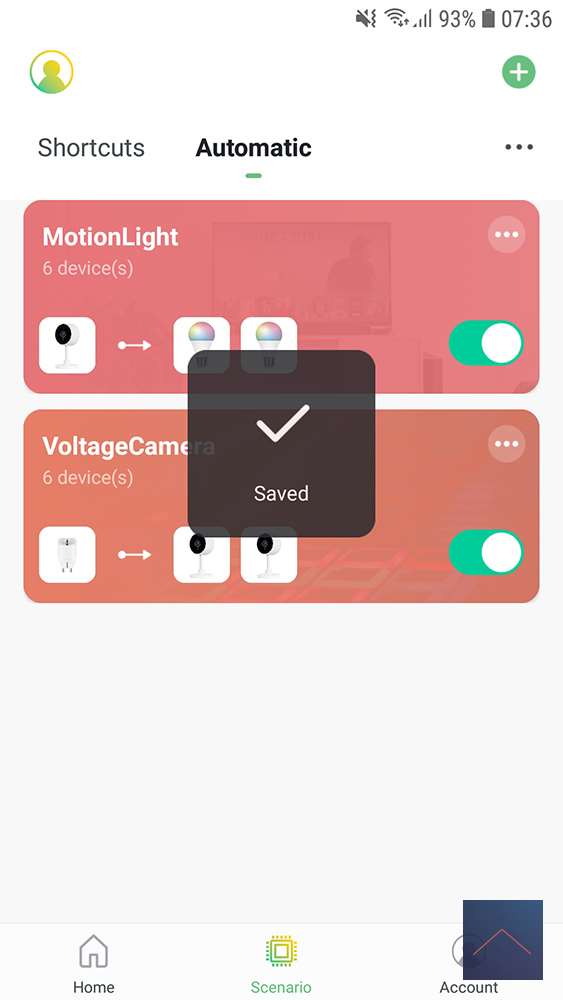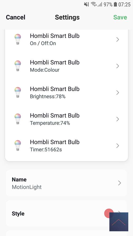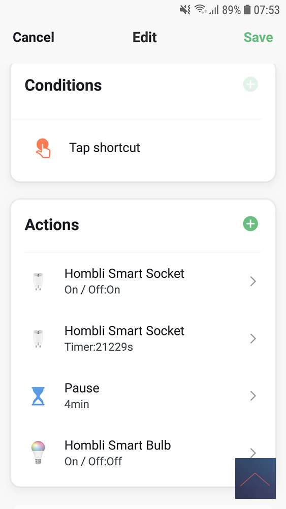 So we can create nice automatic scenes, but it can't get more complicated than this in the Hombli App. Because the products go to the cloud via the internet and go back to another device, you occasionally notice that there is a delay. This is unfortunate but can be lived with.