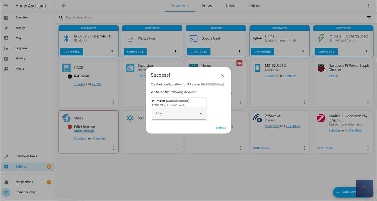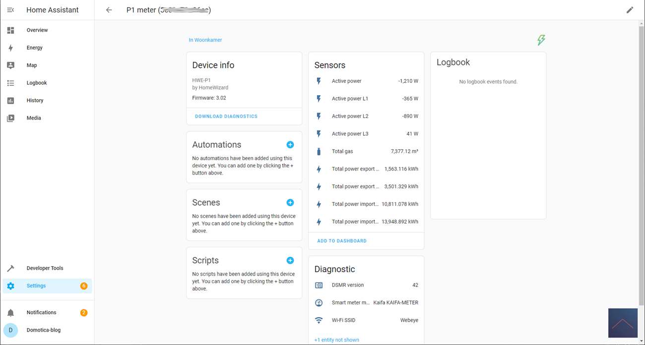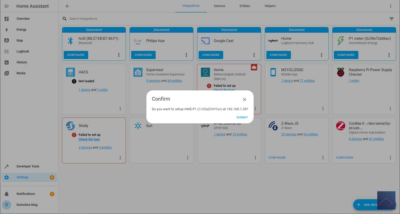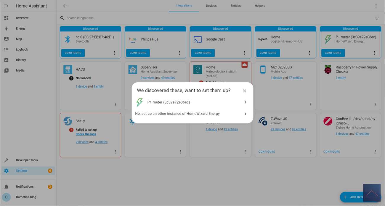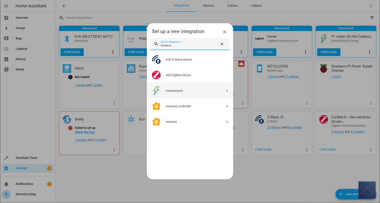 Installing is super simple. You go to settings, devices, click on new integration and search for HomeWizard there. After a few clicks it is added. Glad this all works so flawlessly.