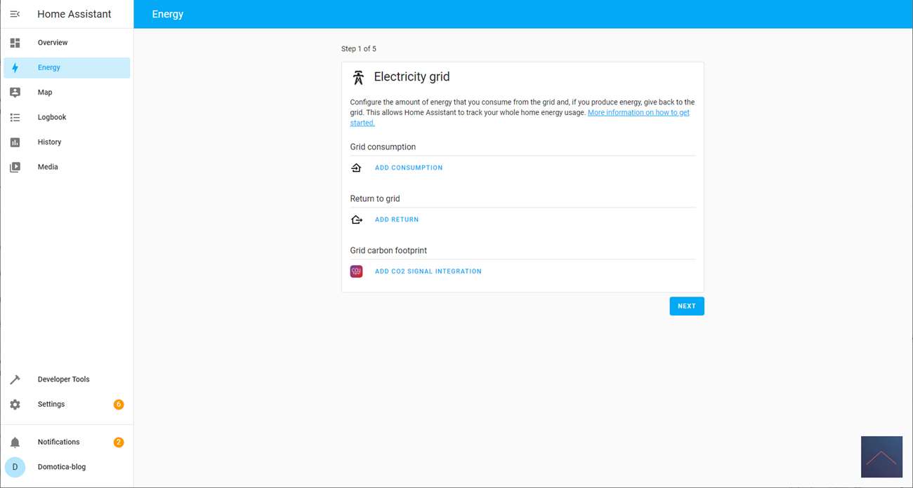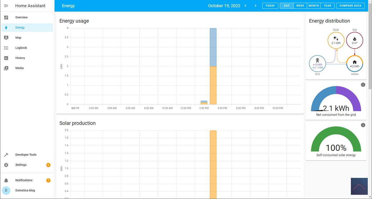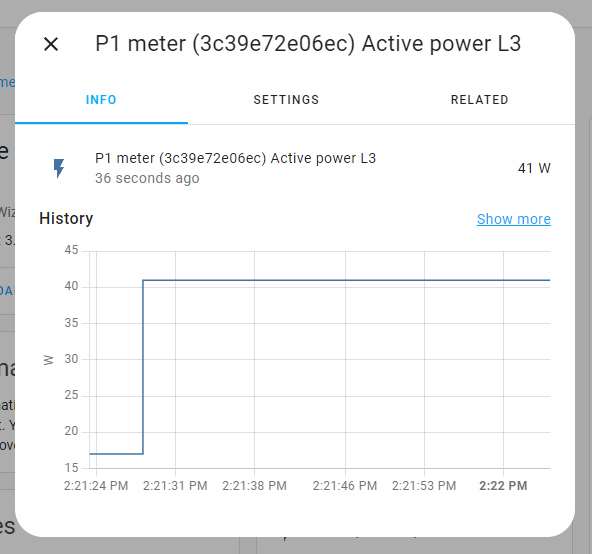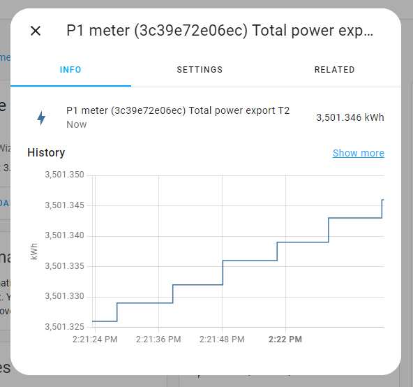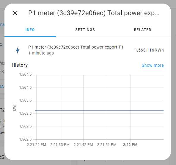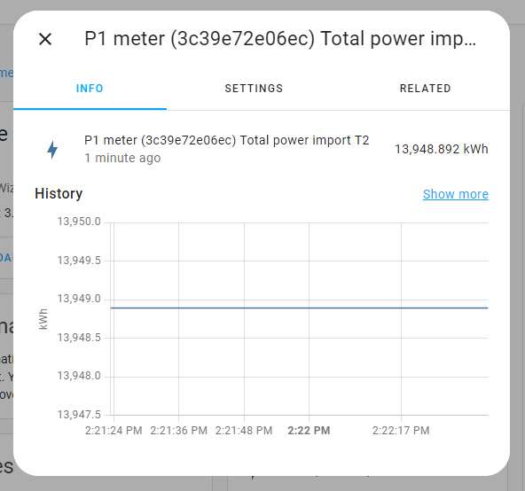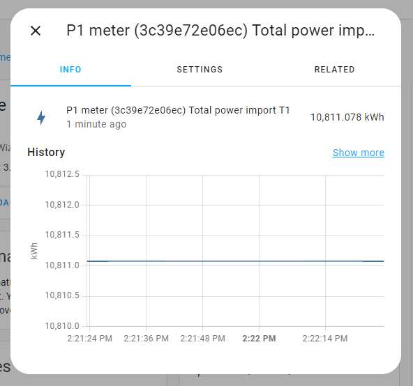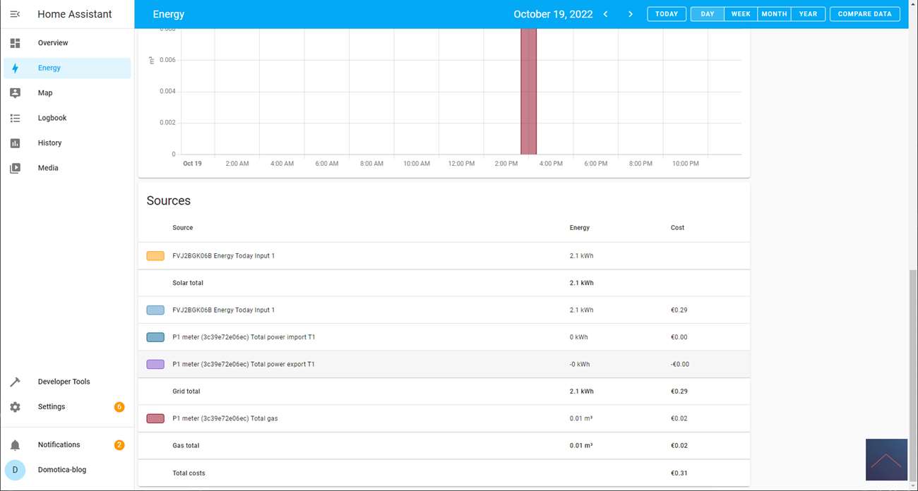 We can also use the HomeWizard in the Energy section. This gives us even better insights. It takes a while for the values to come in.