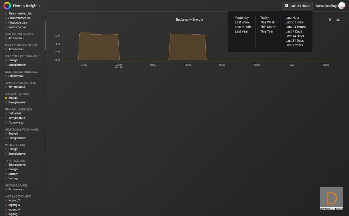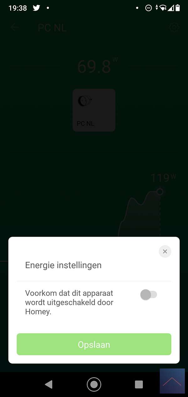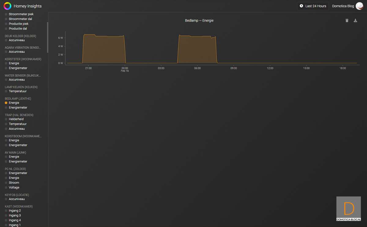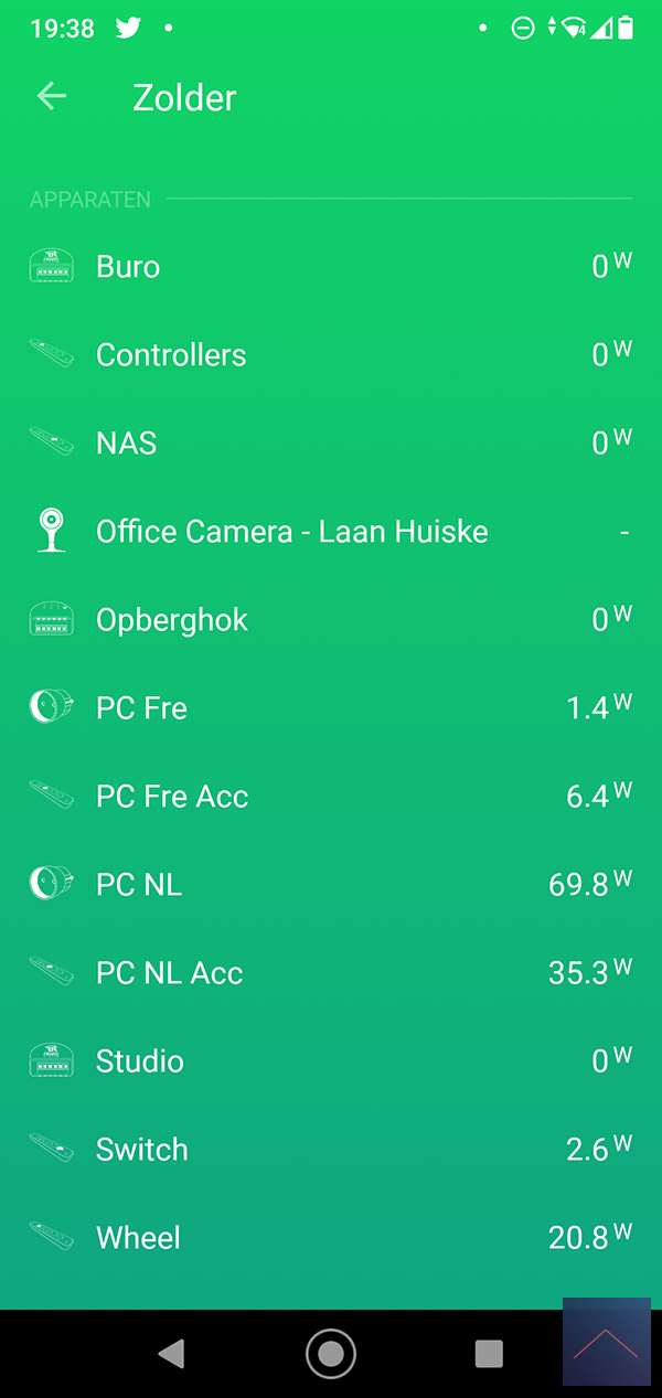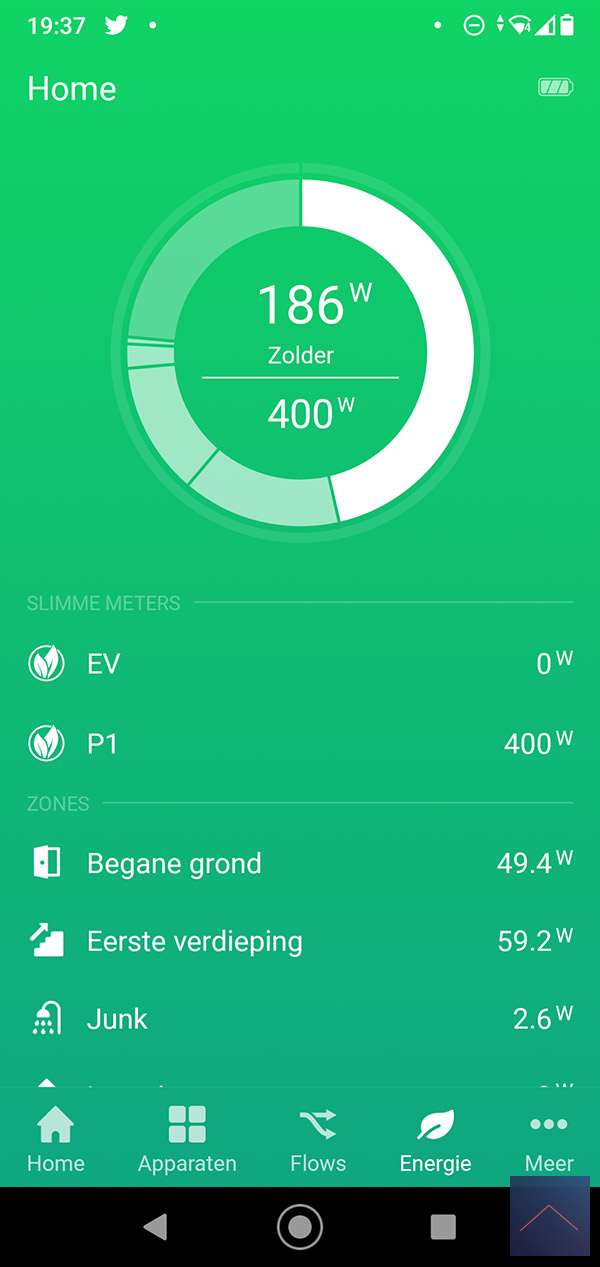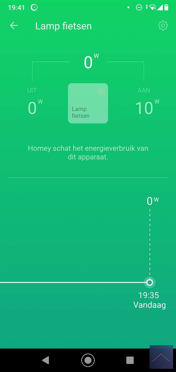 A new part in the Homey is the energy part. Here you can see the current consumption of a device. Handy to see where your standby consumers are. If you use a device such as a Fibaro Wall Plus, you will automatically see the consumption.