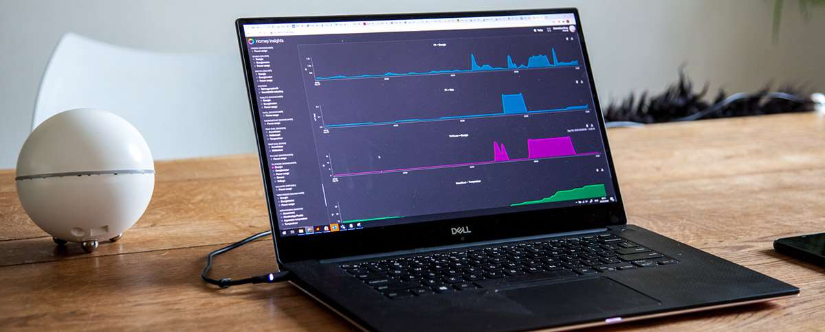 The insights section provides insight into what your devices are doing. For example, you can see what the temperature trend is. This section has been set up very extensively. You can look back in time, export the graphs, create a CSV file of the data, delete everything and change the graph type.