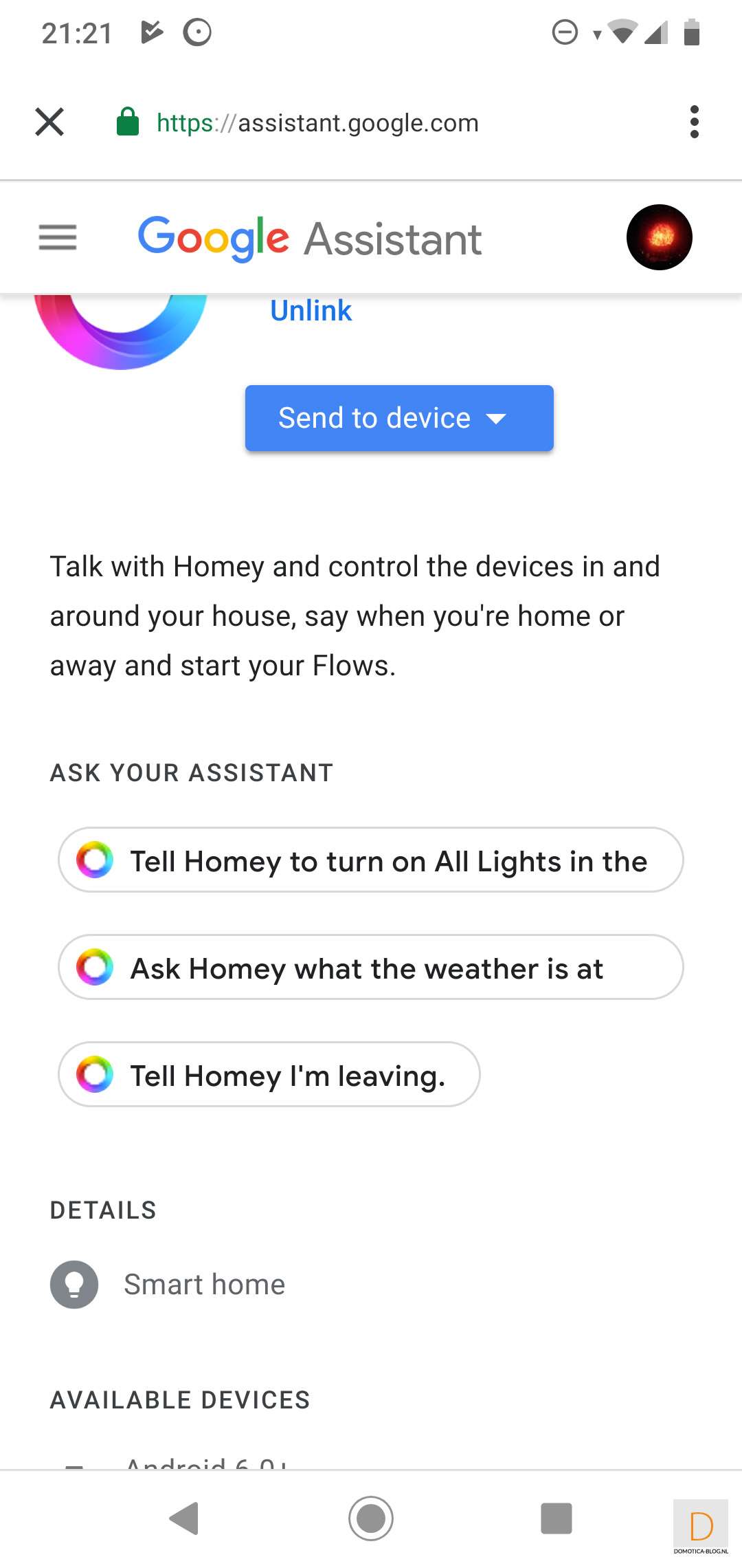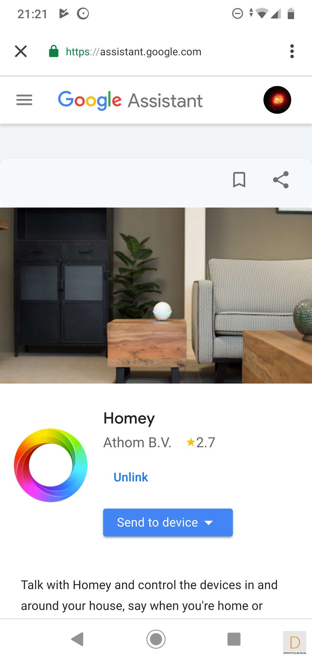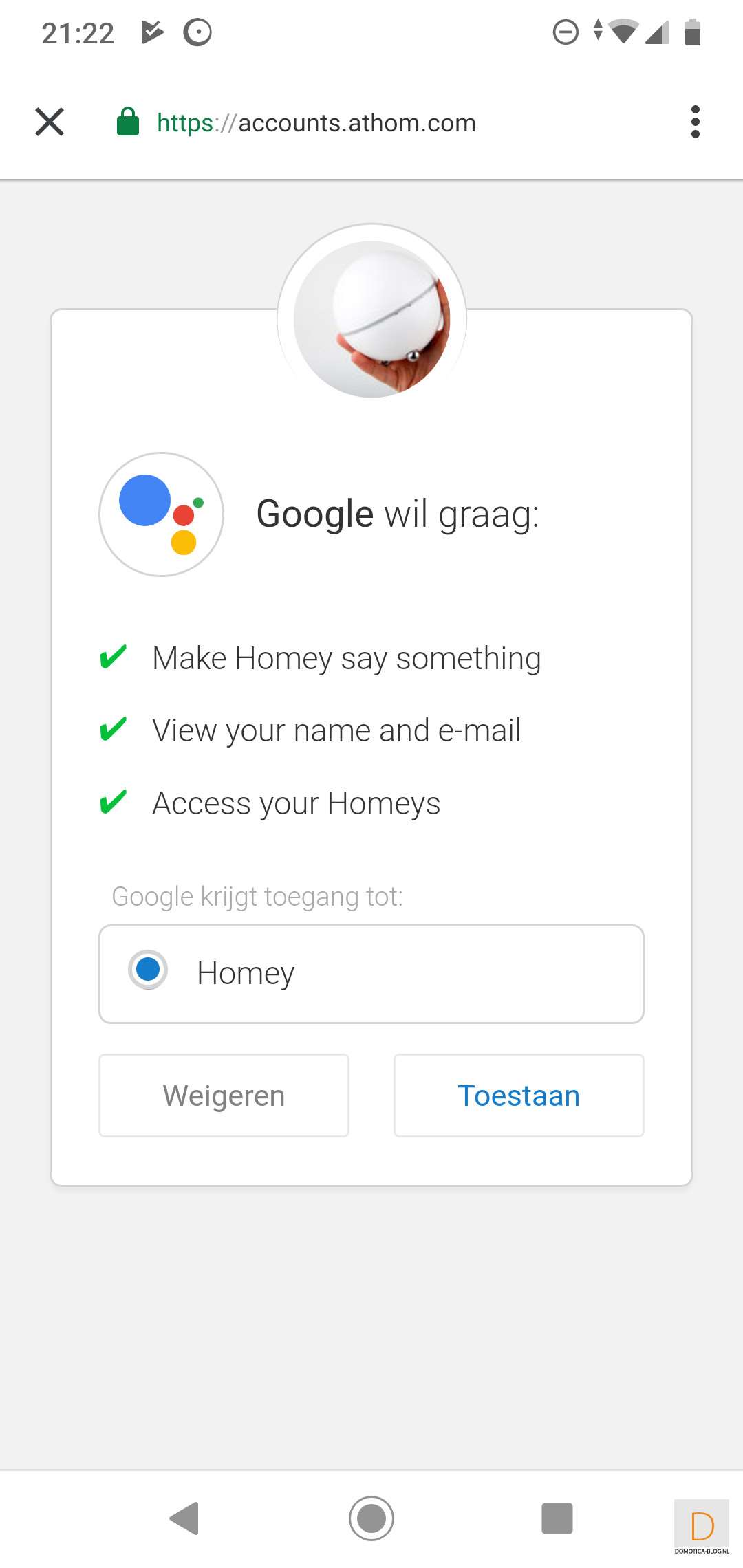 Connecting went without any problems. To access the Homey via the Google Home, ask him, for example, the following: Okay, Google, turn on the lights in the living room. The command is then sent to the Homey with the Homey providing a feedback. This is a different voice from that of the GH.