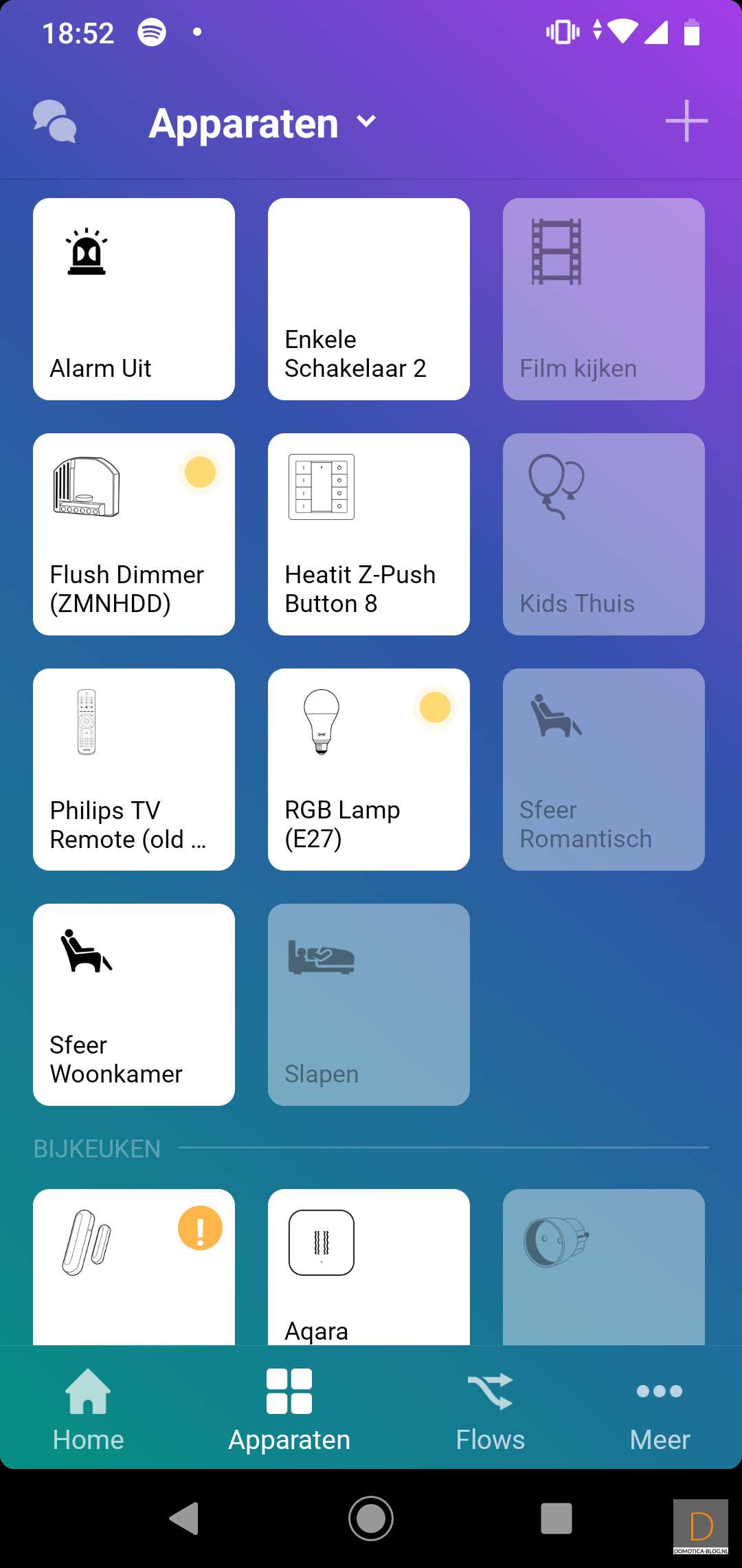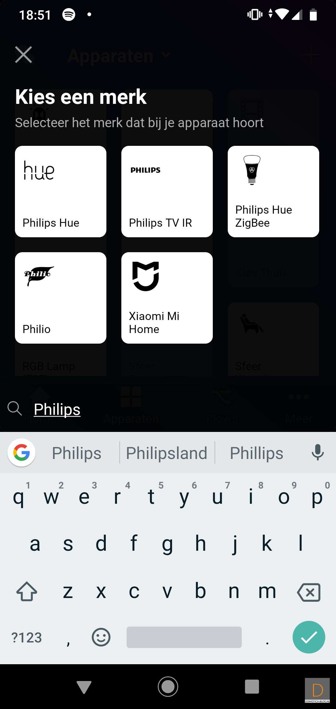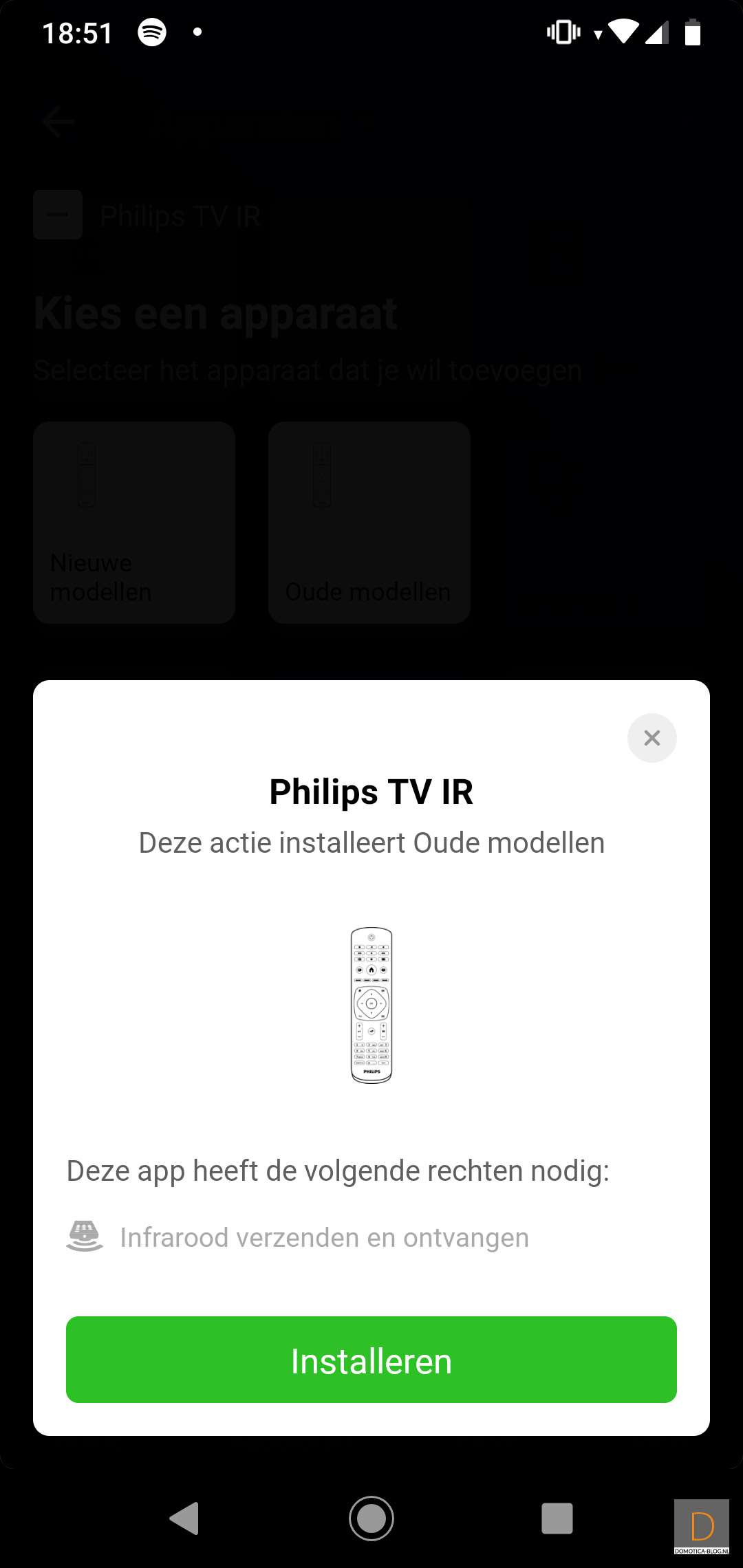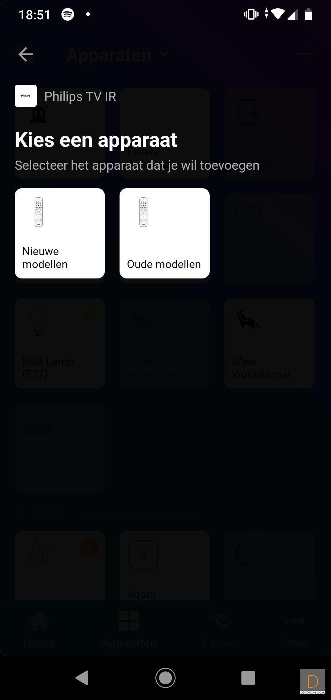 The Homey has 6 infrared sensors built in. Your old trusted remote control from, for example, your TV works via infrared. Very useful. That way you don't always have to start your APP. Homey has an extensive database with codes. In the screens below I have added my Philips TV.