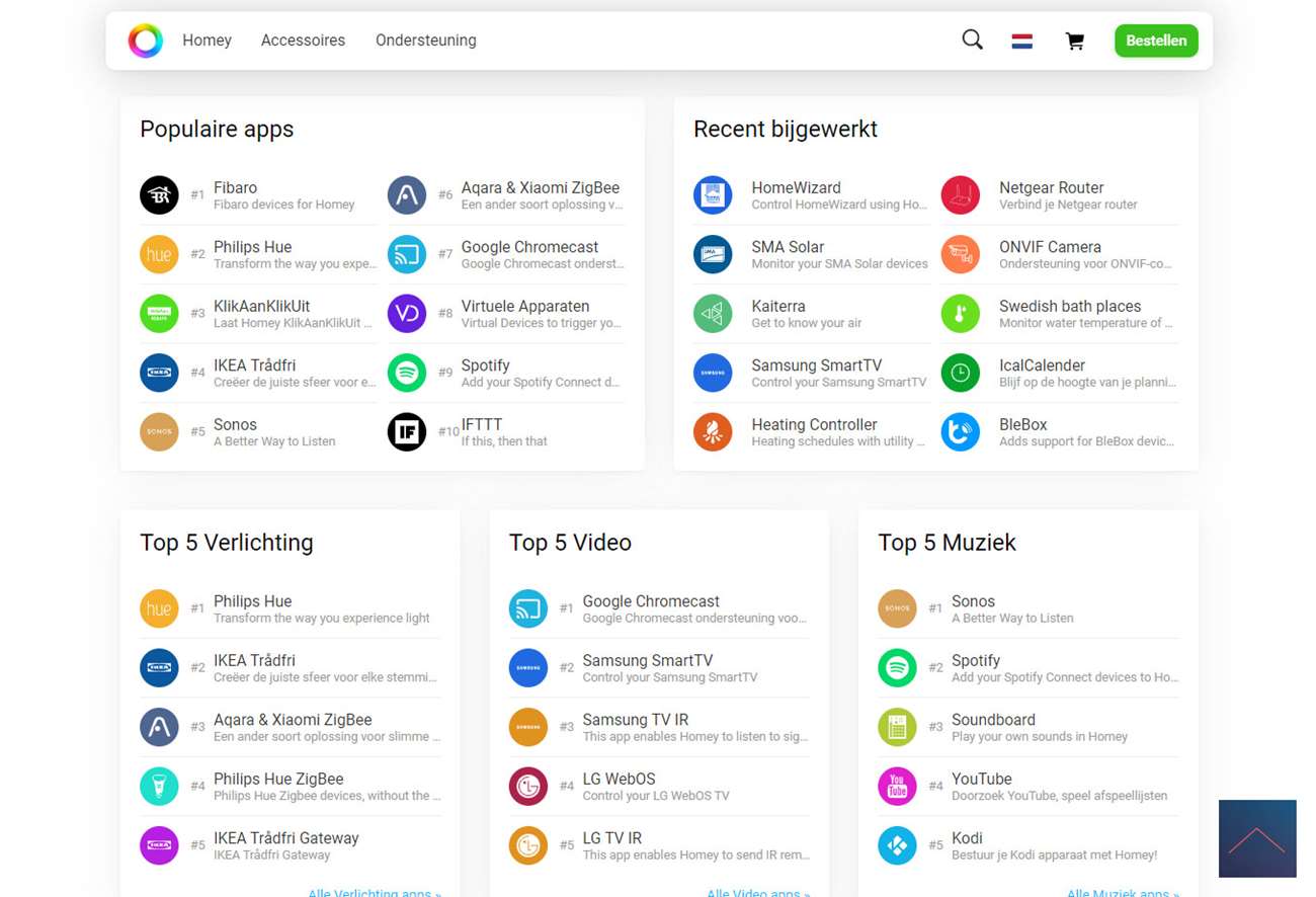 As already mentioned, it is possible to install APPs on the Homey. In the APP section you will find all installed APPs and a link to the store (https://apps.athom.com/). Homey is an open platform which makes it possible to add APPs yourself. More controllers have this option (Fibaro/Vera). The problem with this is that these APPs are often not made by an internal programmer.