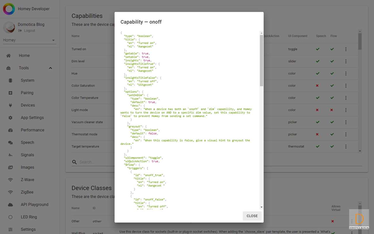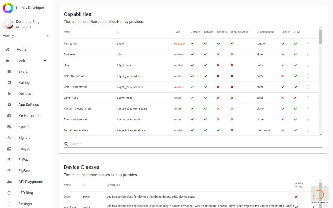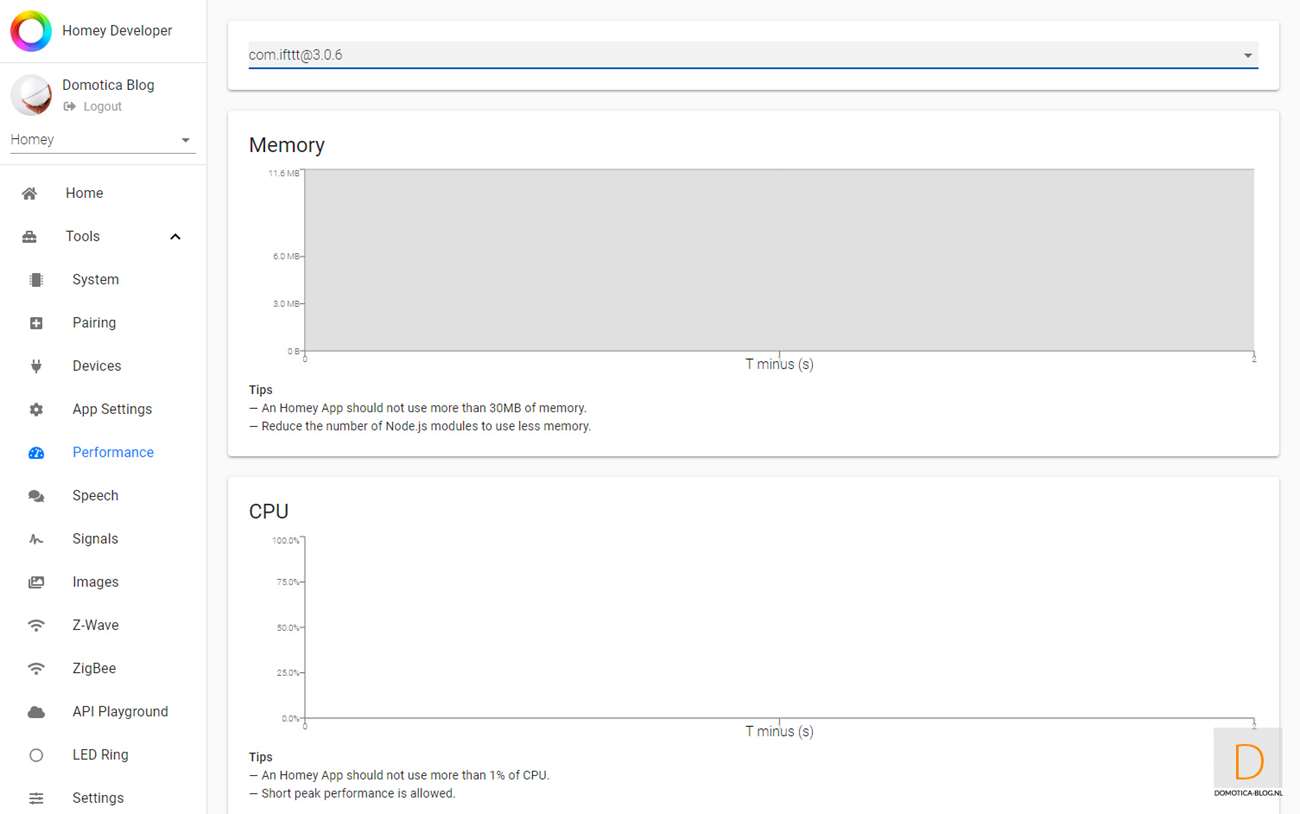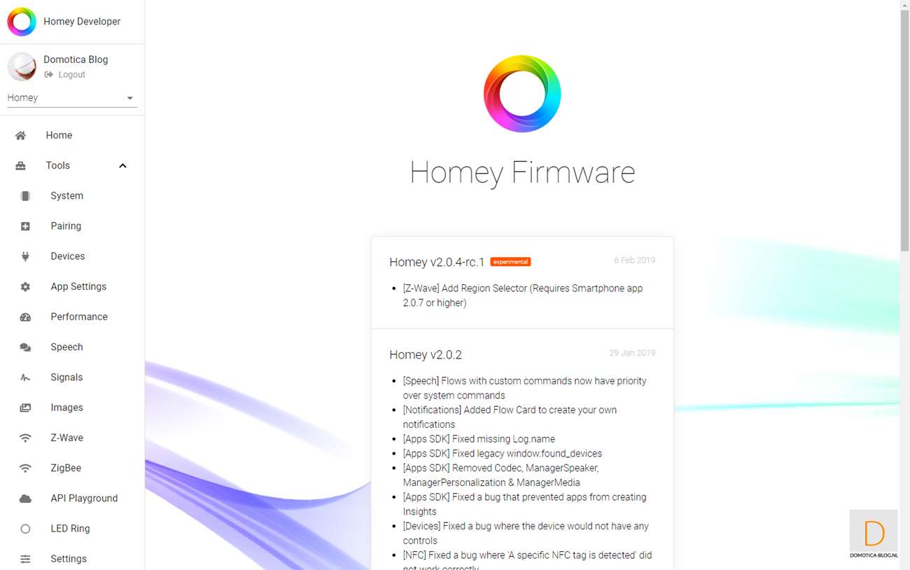 In addition to the APP, there is also a web part of the Homey. Athom calls this the developers part. Here you can restart the homey, view the performance and view system data. You will also find all the devices here (Z-Wave, BT, Zigbee and 433Mzh) and you can get a comprehensive overview of your network. This way you can see what your network connection is between the different devices. You can also find your network heal here to rebuild your network. Very useful feature to ensure that everything continues to work properly.