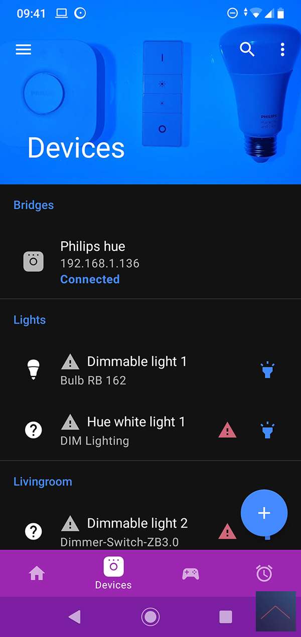 The HUE APP has a possibility to see if you are at home or not. I want to use this functionality. I have an amplifier which cannot be turned off. This always remains in standby, which consumes about 25W. This is of course a shame.
