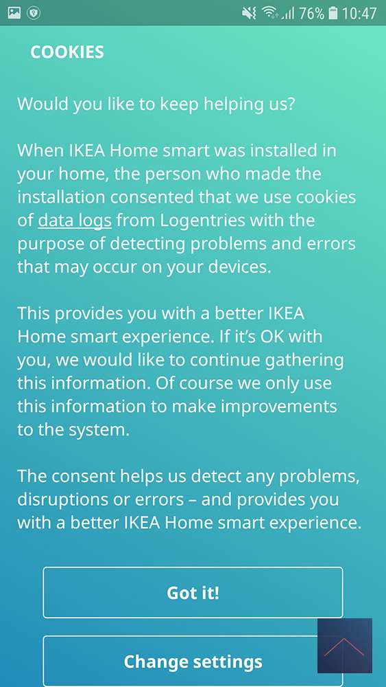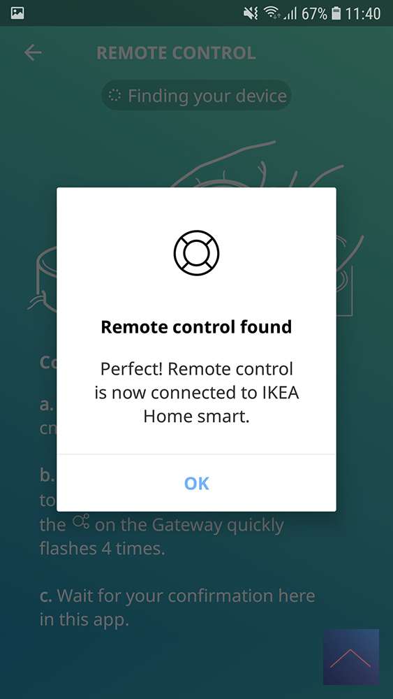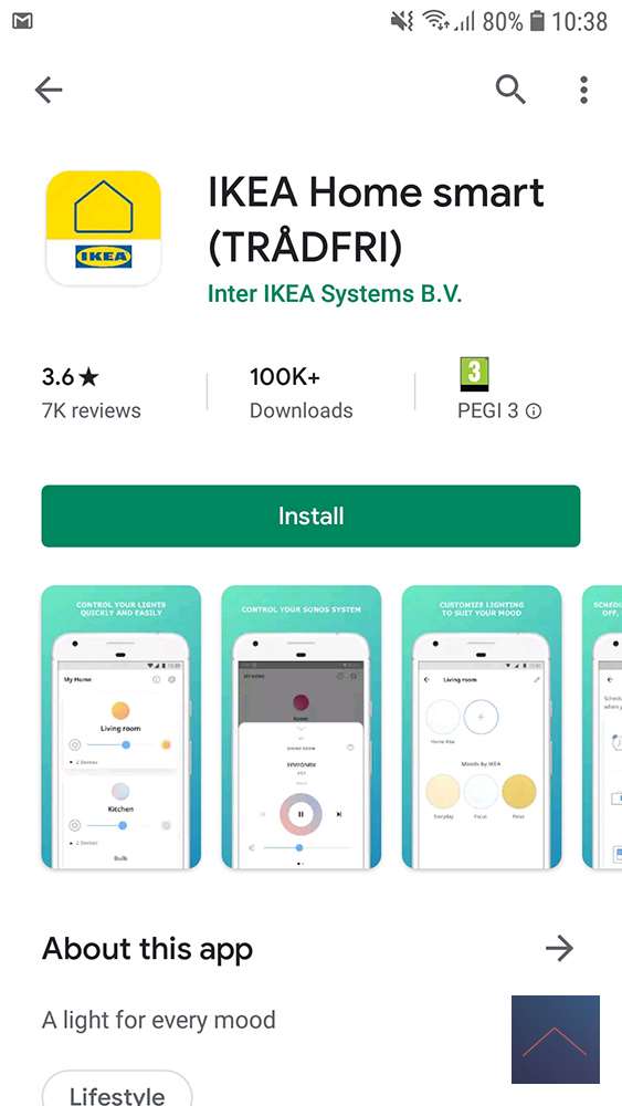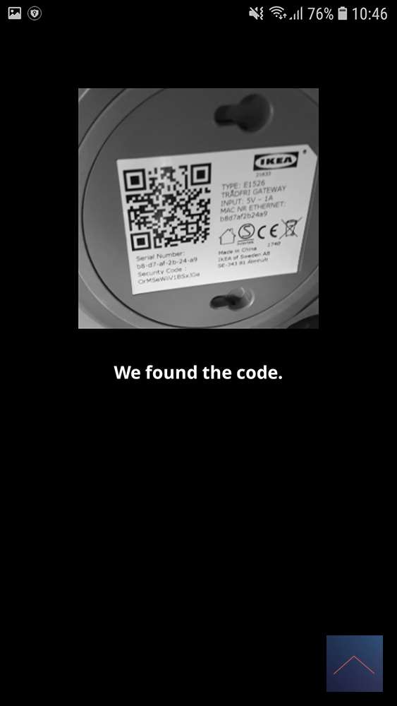 After this you go to Google play, in case of an Android device, or if you have an iOS device to the App store to download the APP. After installation, start the APP and scan the code on the back of the gateway. The code is then checked on the servers of Ikea. You can then add a lamp or remote control.