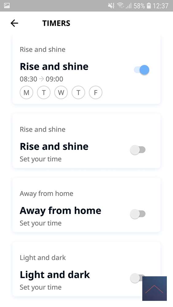 It is possible to automate matters via the timers component. In this way you can "wake up", "away from home" and make an ON and OFF rule. It is a shame that these are all fairly simple matters. Making extensive rules is unfortunately not possible. For example, let a lamp turn off / on automatically when you are not at home (as security). There is therefore room for improvement in this area.