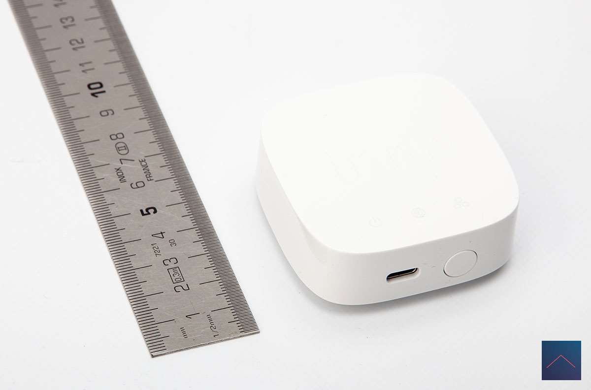The bridge is super small, so make sure you don't lose it. It works via WiFi, so a UTP cable is not necessary. It's powered by an included USB adapter and cable, so all you need is a power outlet.