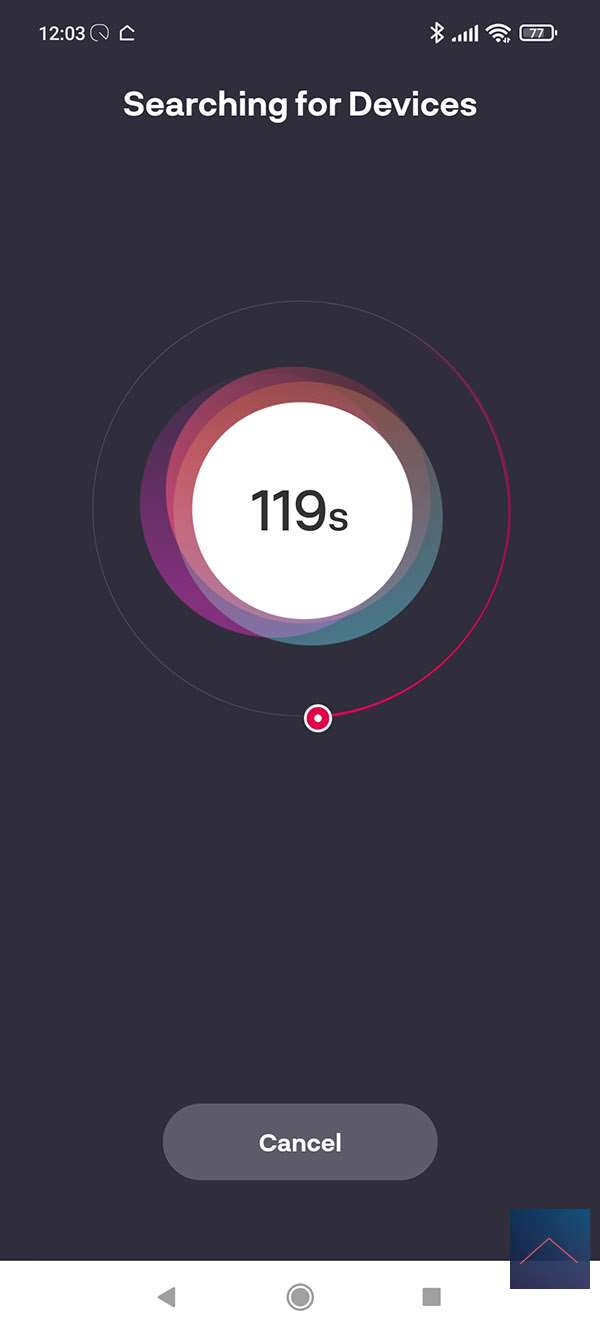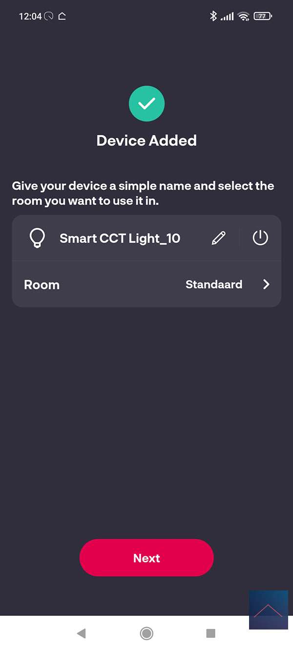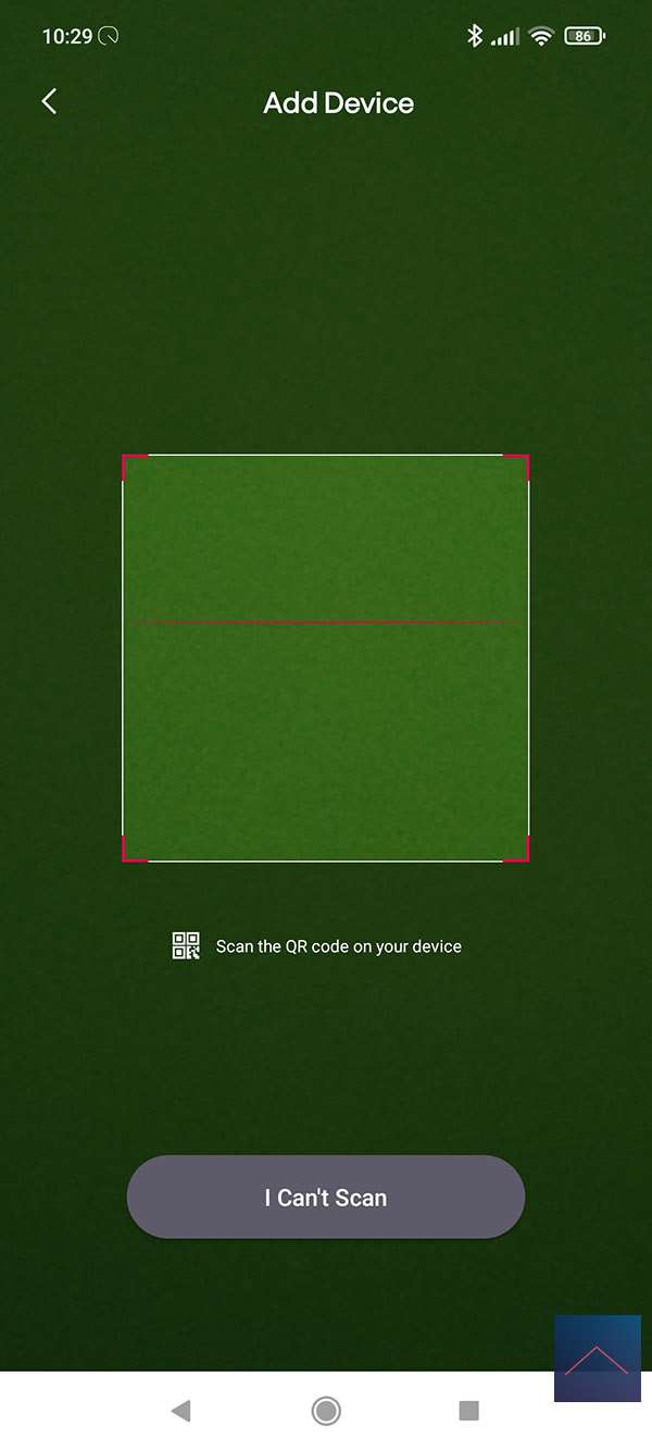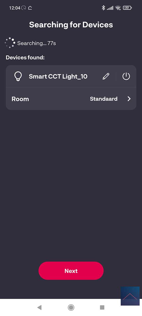 We will also install this again and this will be done in the same way as the lamp from before. So go back to the scanner via the plus sign and 'add devices' to scan the QR code on the back. After this we have to remove the tab by the battery and wait for the LED to flash red, then we press next and the search will start.